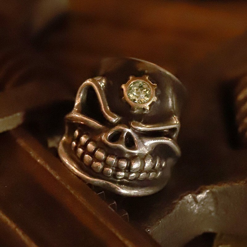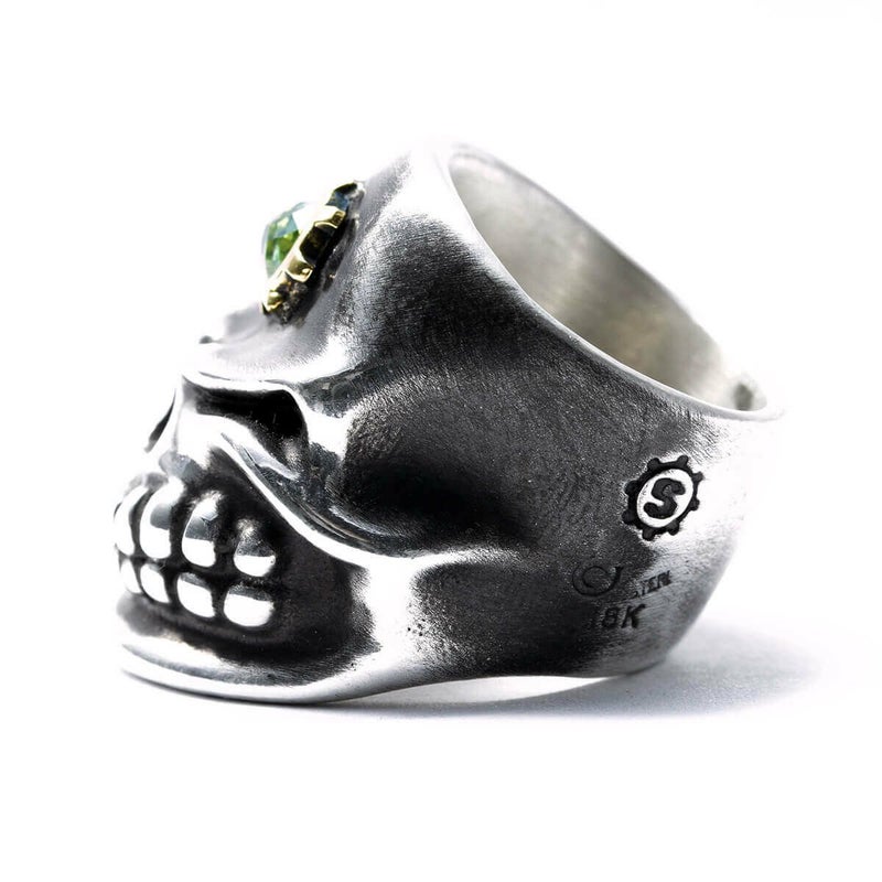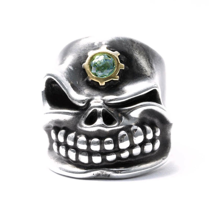 スターリンギアを代表するスタイラースリックスターリングがリモデルされ登場!!従来のボリュームを残しながらも、カービングを表現し立体的に作られた新しい姿となります。さらに18金で作られたギアに合わせて専門職人が原石からカットした特別なガーネットを額にセッティングしているカスタム品。