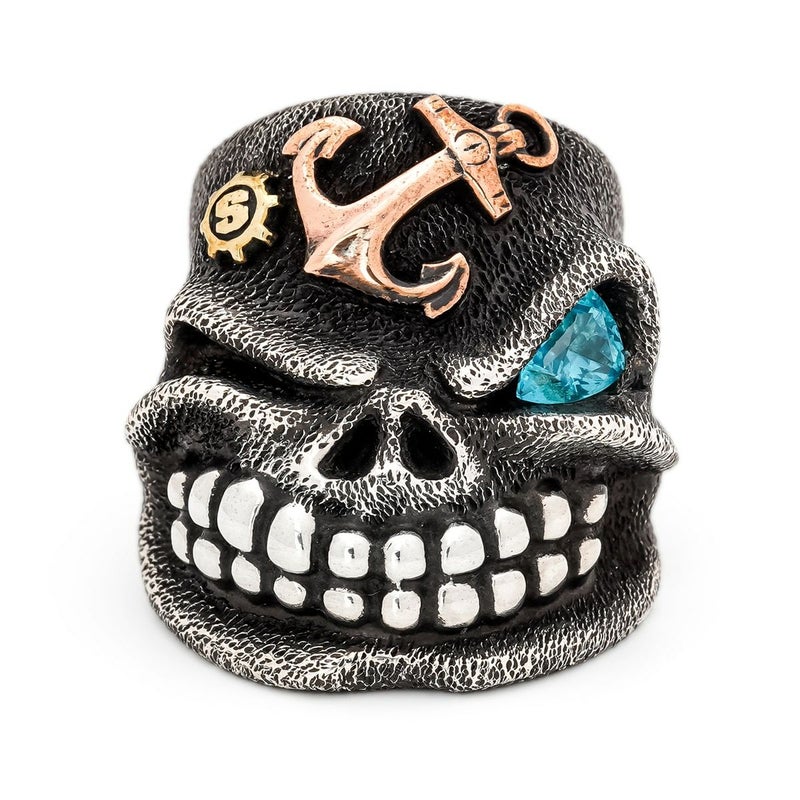 【25周年限定カスタム】 スターリンギア ニューパンチャースリックスターリング w/ツインズ/コパーアンティークアンカーパーツ/ブラスSギアロゴ/特殊カットアパタイト/テクスチャー(S000123277)【リングサイズUS8.5(日本サイズ約18号)】