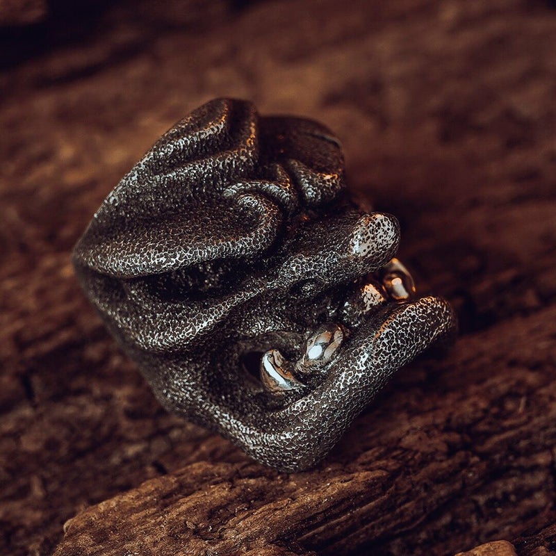 パンチャーカラス天狗リングに全体にハンドテクスチャーを施し、スカーを入れたカスタムアイテム。