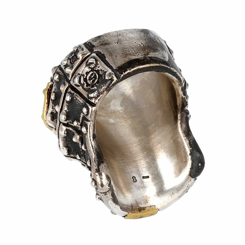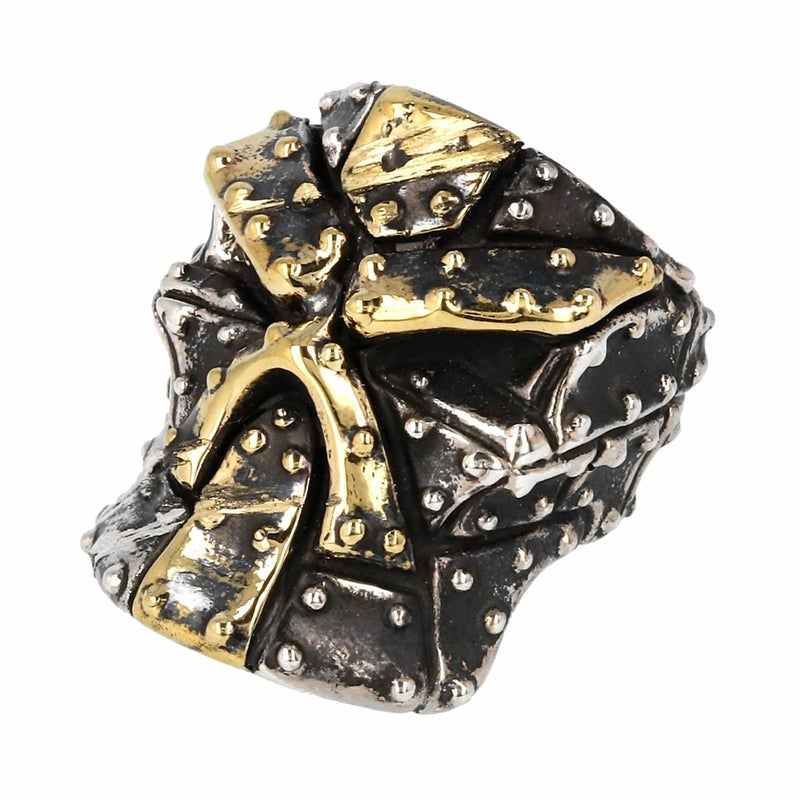 2017年に発売されたアーマーステルスリングのバージョンアップです。リング本体と顔正面のクロス部分のアーマーが別パーツで製造されているため異素材の組み合わせが可能になりました。鎧をまとったステルスには戦いを象徴する傷跡(バトルダメージ)が入っており、これはWAXの段階で一つずつ手作業で施しています!※刻印の位置はランダムになるため、位置の指定はいただけません。