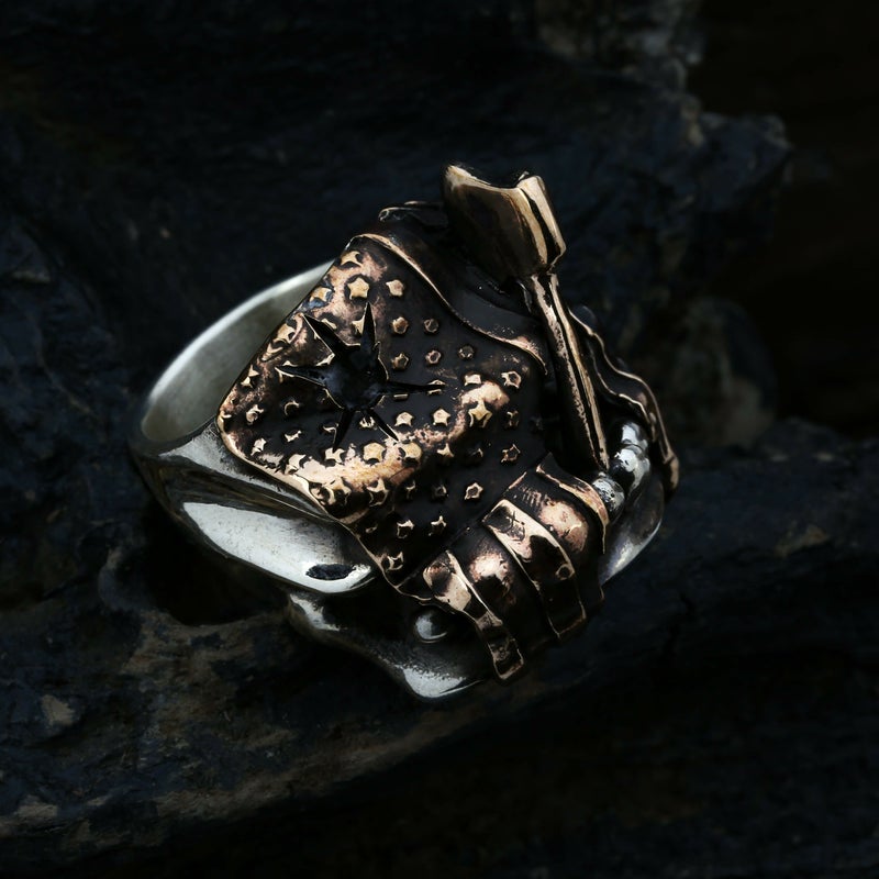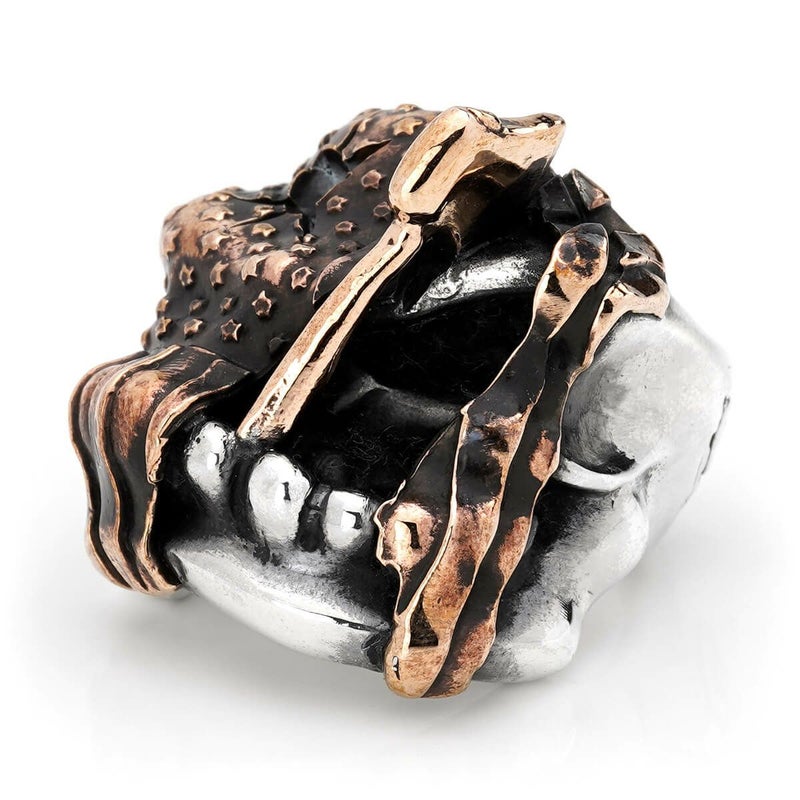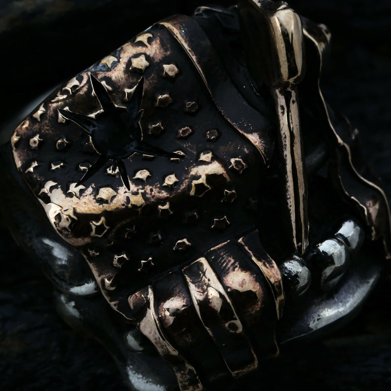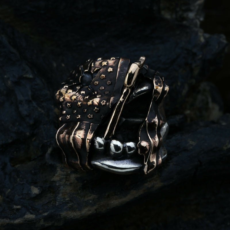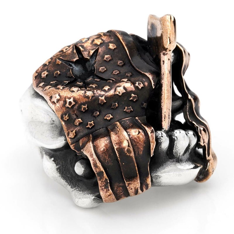 【日本限定&カスタム】 スターリンギア パンチャーニューブルーザーリングw/フラッグフェイス/コパーアメリカンフラッグ/コパーアックス/バレットホール(s000121587)【リングサイズUS10.5(日本サイズ約23号)】