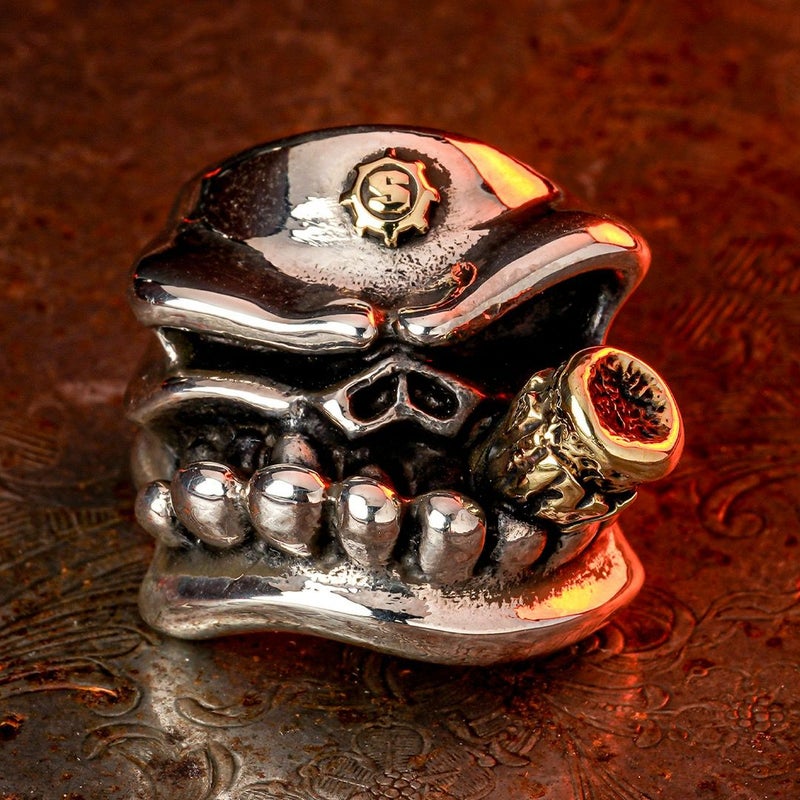 人気の高いパンチャーニューブルーザーリングのカスタムで、真鍮素材のビッグシガーと小さいSギアロゴがカスタムされた一品。