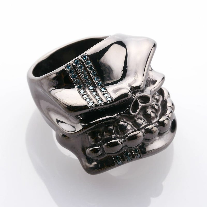 スターリンギア パンチャーニューブルーザーリング ブラック w/ライト2ラインブルーダイヤモンドパヴェ