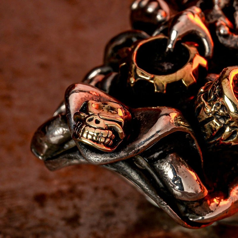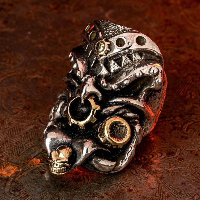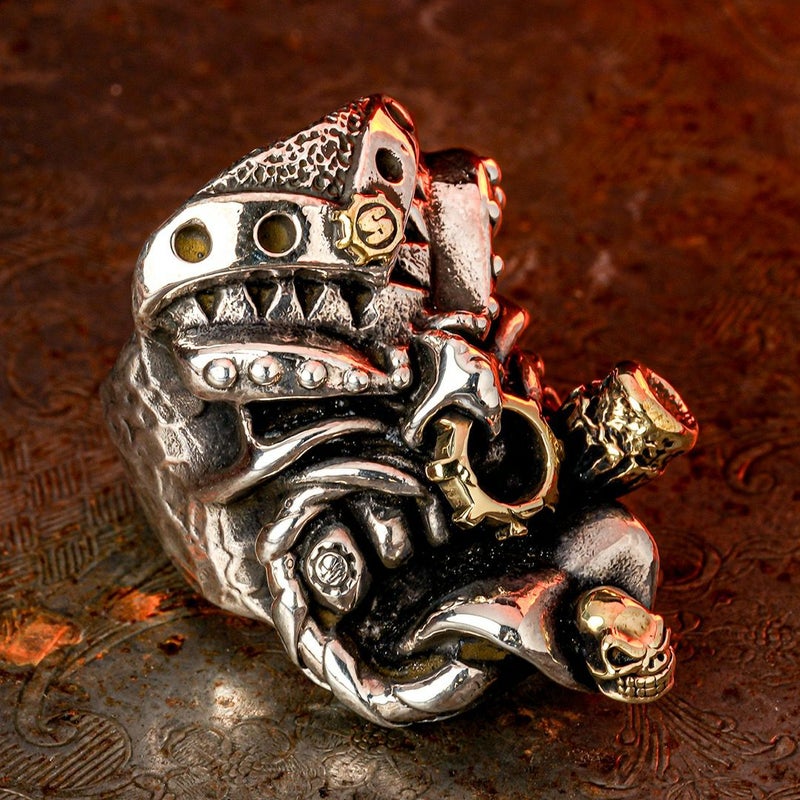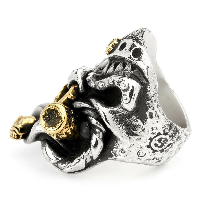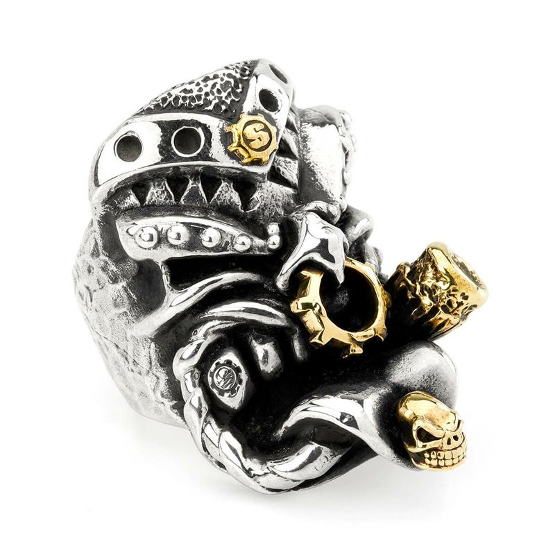 【カスタム】 スターリンギア パンチャーニューマオリリング w/ブラスミニスカル&ビッグシガー&ミニSギアロゴ&ギア