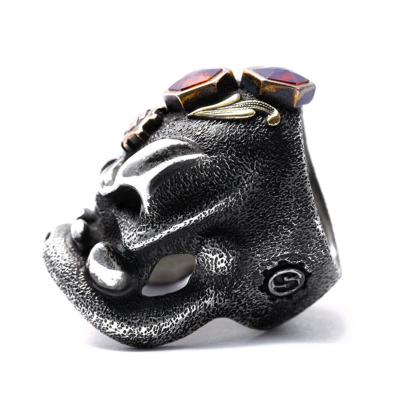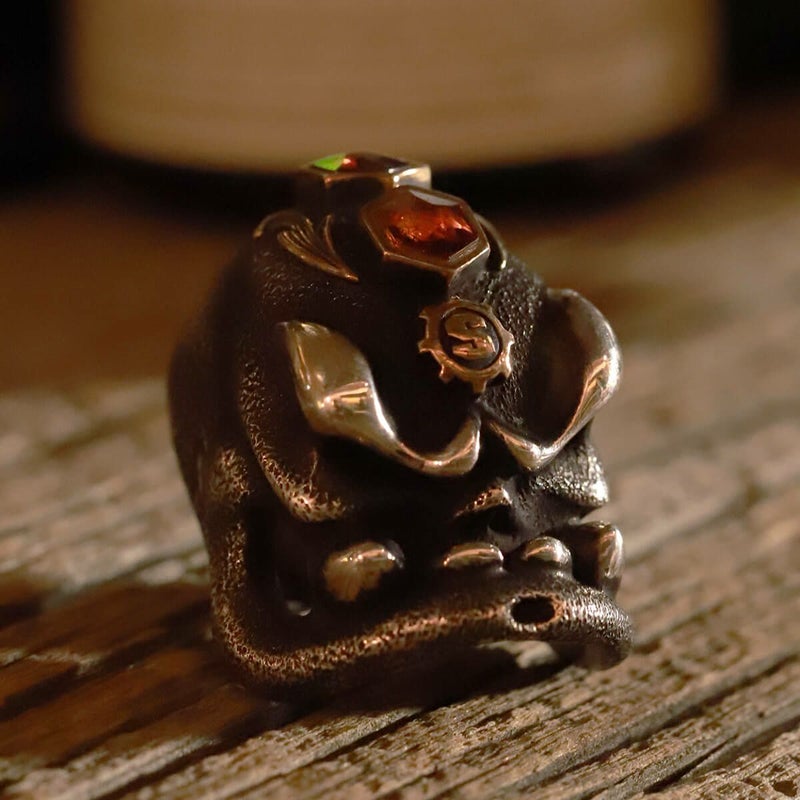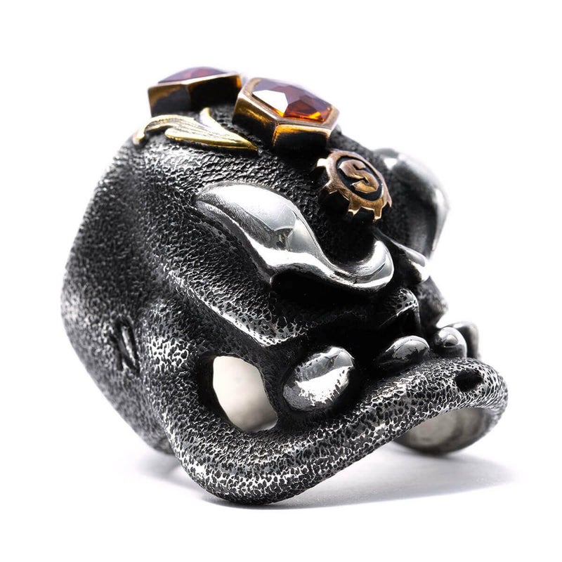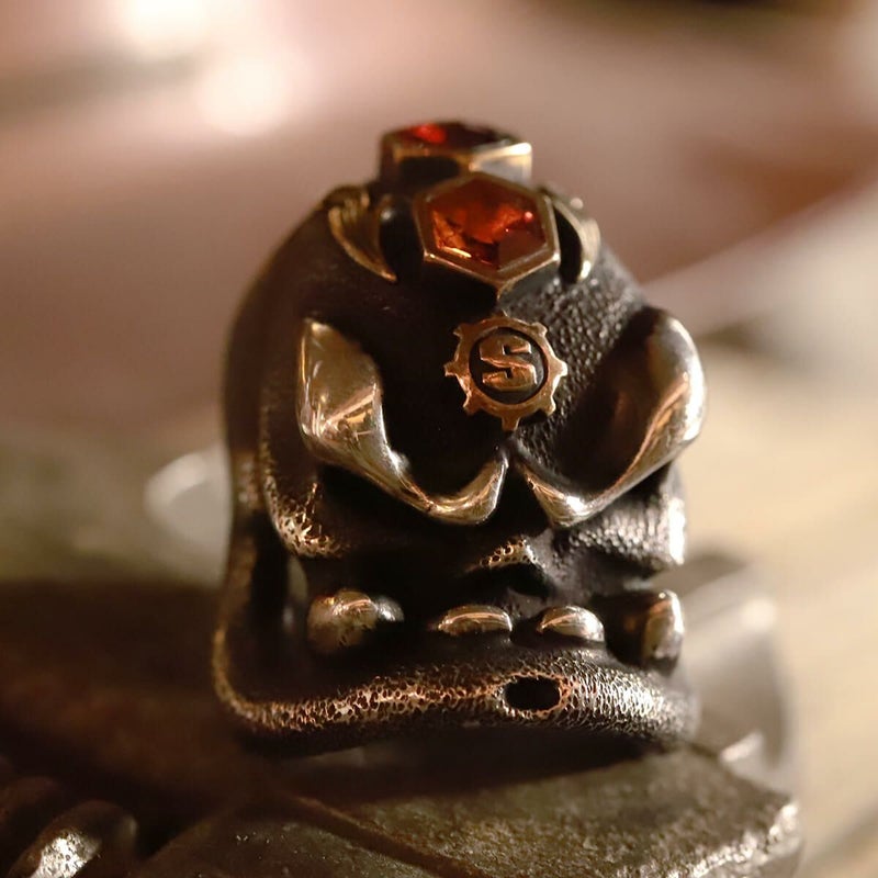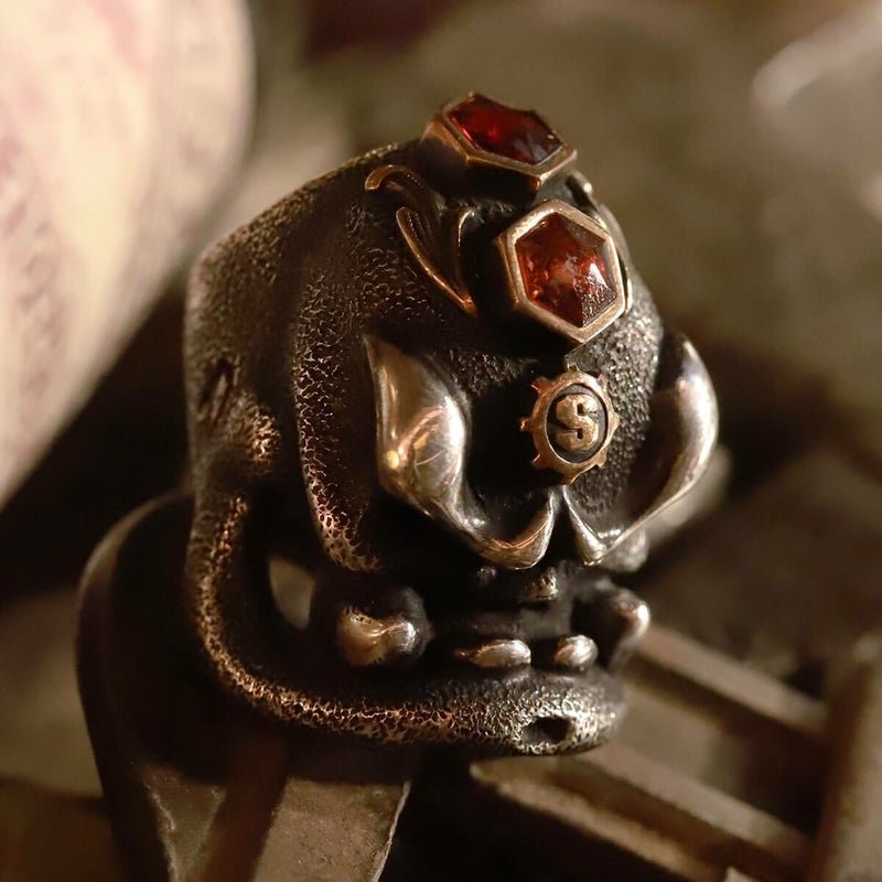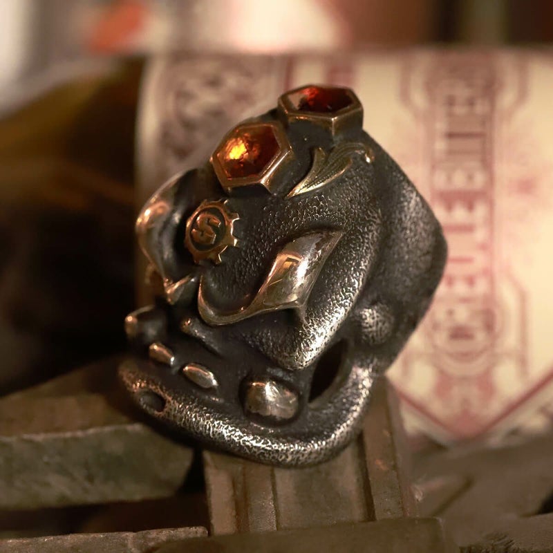 【限定&カスタム】 スターリンギア パンチャーニューマザーファッカーリング w/ワンオフ/ブラス&コパーアンティークパーツ&Sギアロゴ/スペシャルカット 2スぺサルタイトガーネットカスタム