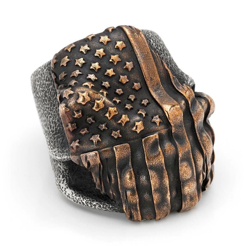 【カスタム】 スターリンギア ニューパンチャースリックスターリング w/フラッグフェイス/コパーアメリカンフラッグ/テクスチャー(s000117797) 【リングサイズUS11(日本サイズ約24号)】
