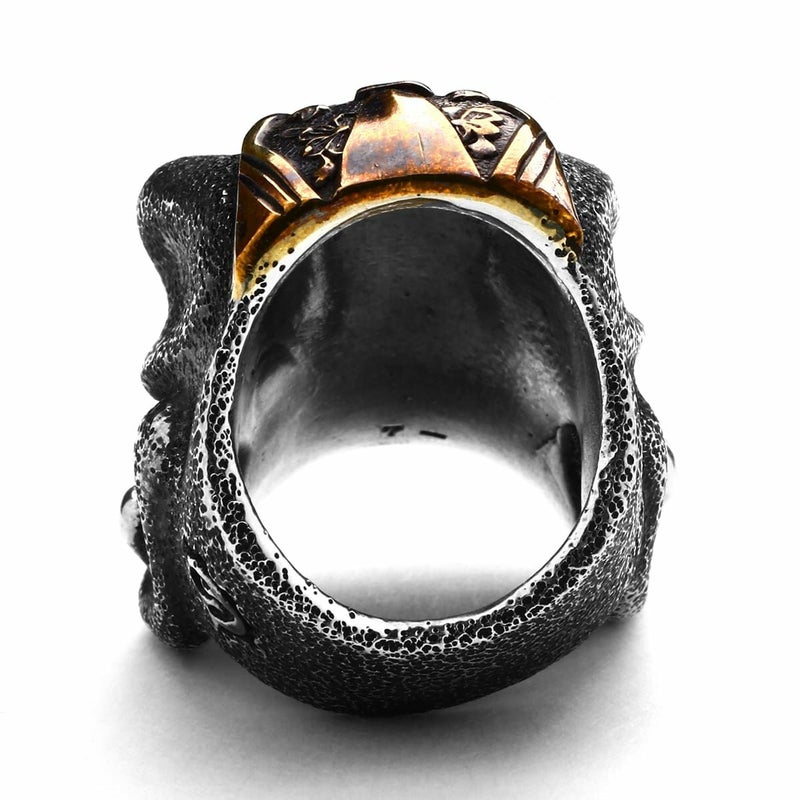 ワンオフシリーズのSOBリング。原型はプレーンでオデコには何もない状態です。そこにアンティークの銅で作られたブローチをバランスよくカットし重ねている。コパー制の葉巻をつけています。全体のハンドテクスチャーは鋳造後に手在業で施している究極の1品です。