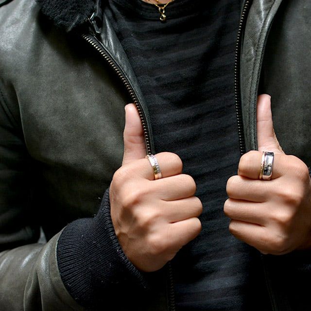 グエル公園にあるモザイク柄と丸模様を一つにした2連リングになります。細いながらもシェルの光沢感と幾何学模様にも見える丸柄が特徴です。