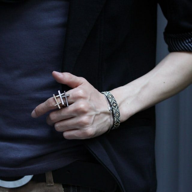 高級感を大切にする為、石留めやクロスのバランスを徹底的に重視したリング。同名のペンダント、ピアスと共に全体をコーディネートするのがオススメです。
