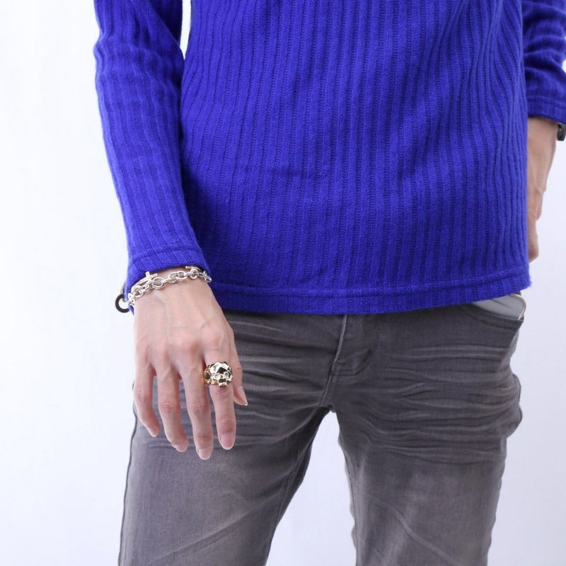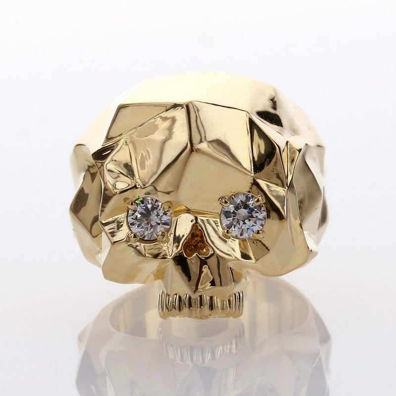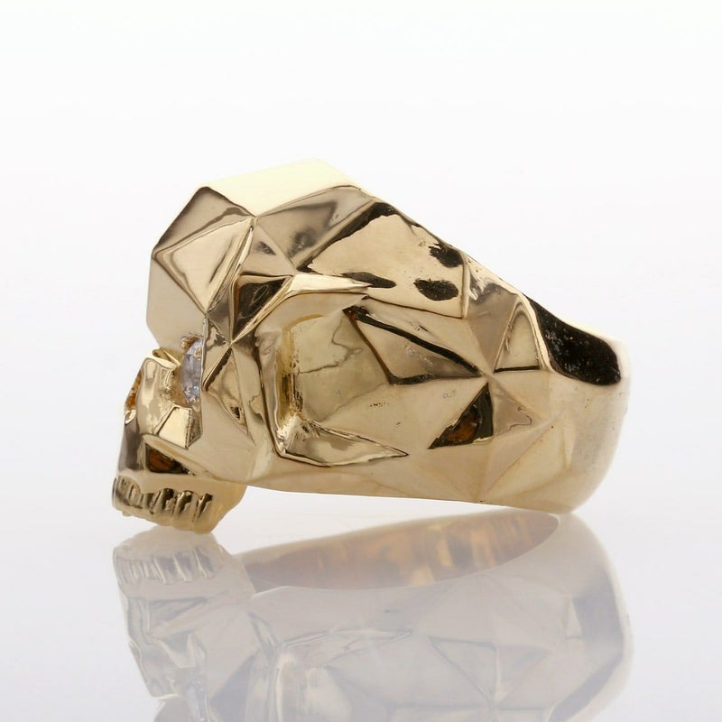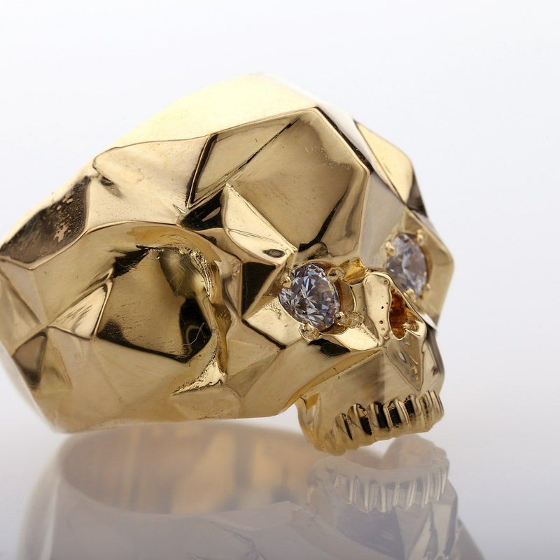 ランダムに多面カットを施したユニークなスカルリング。いかつくなり過ぎないデザイン。