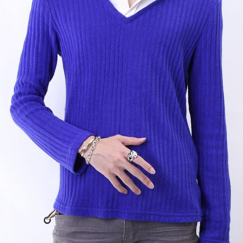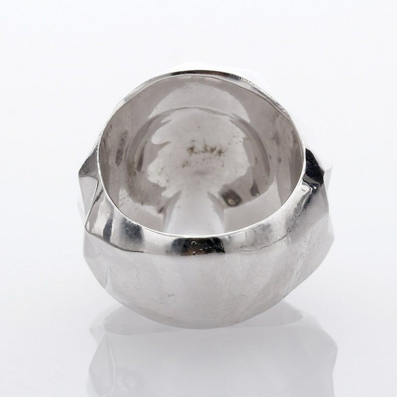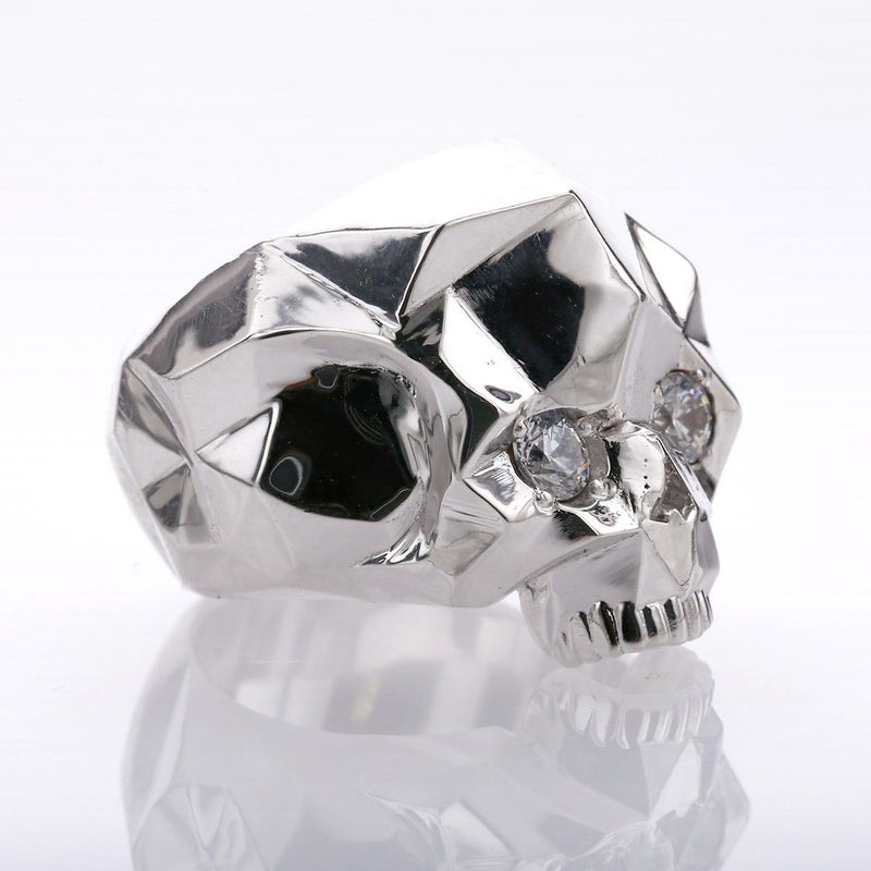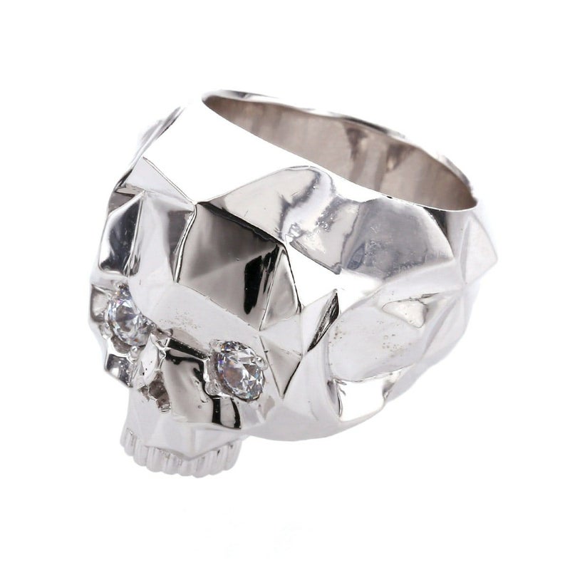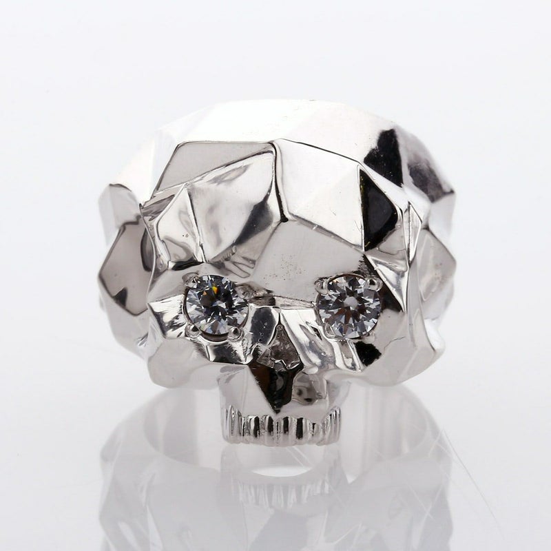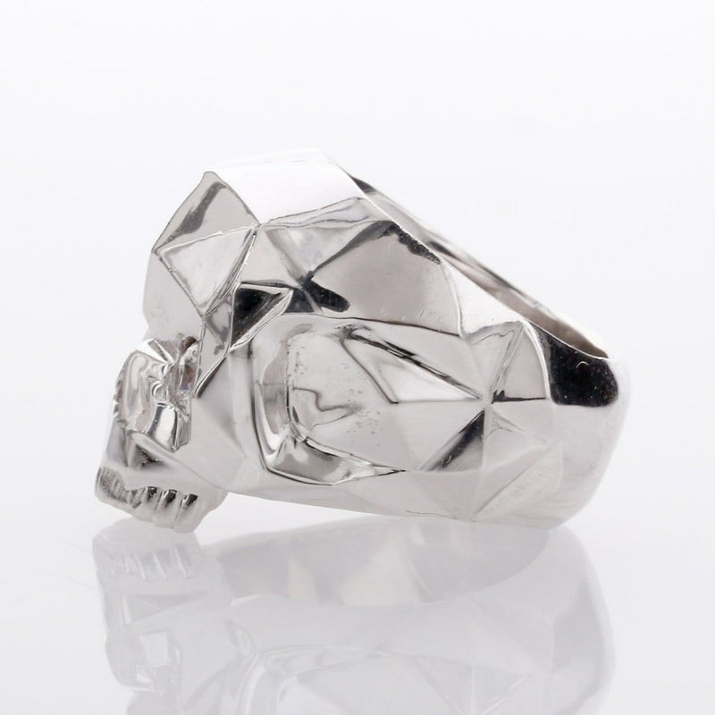 ランダムに多面カットを施したユニークなスカルリング。いかつくなり過ぎないデザイン。