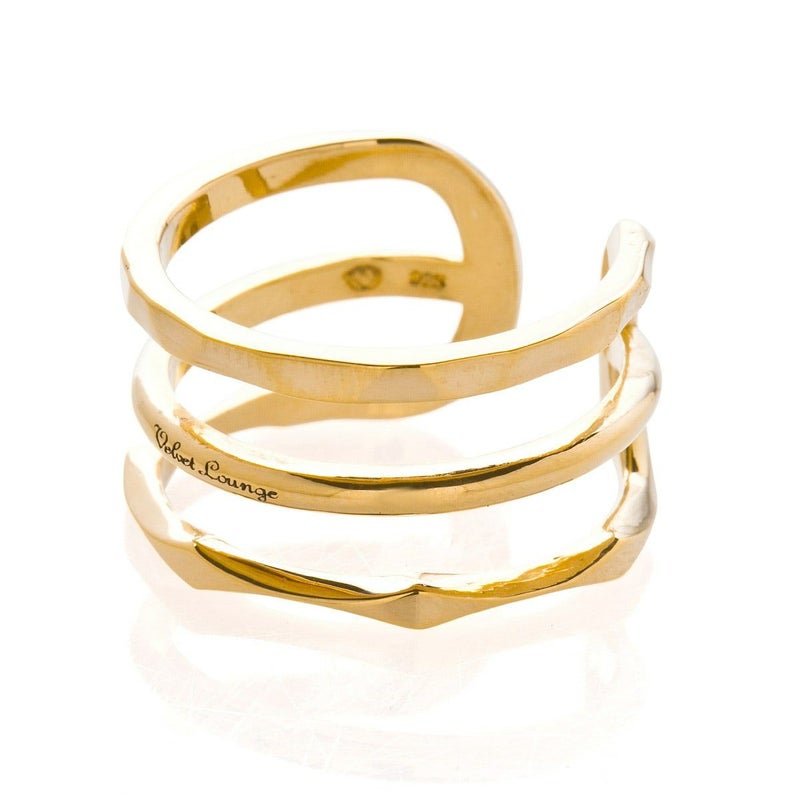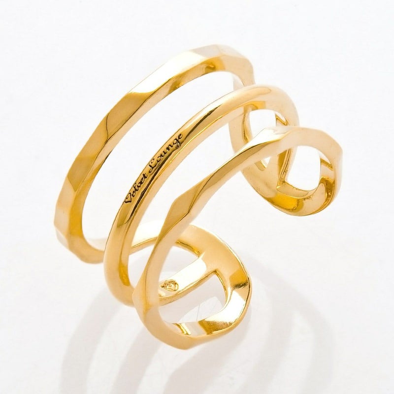 3本の異なる形状のリングが一つになったデザイン。オープンリングなので、少しばかりのサイズ調整が簡単に出来るようになっています。
