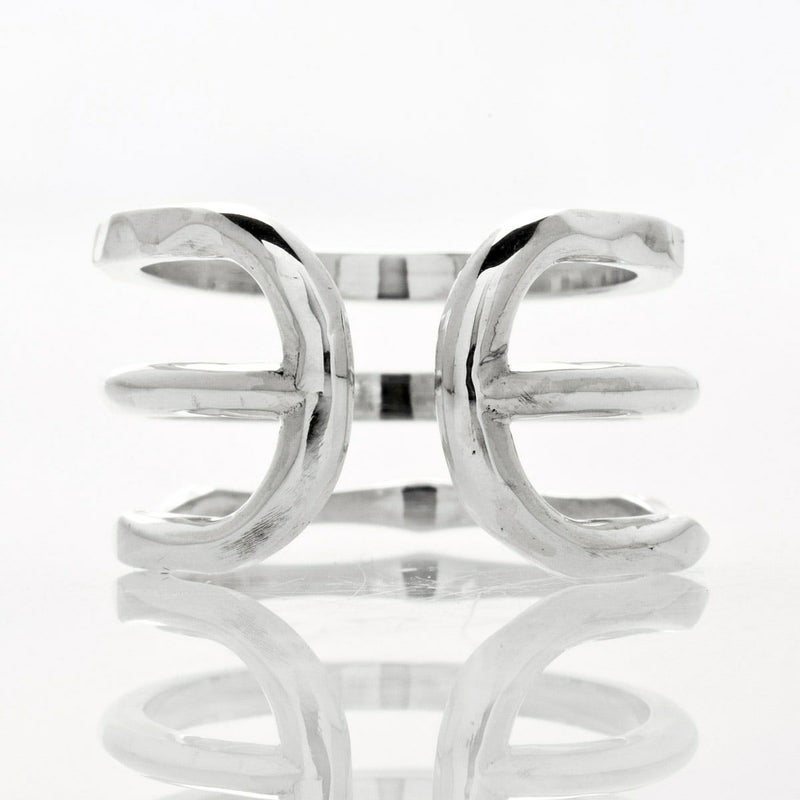 3本の異なる形状のリングが一つになったデザイン。オープンリングなので、少しばかりのサイズ調整が簡単に出来るようになっています。