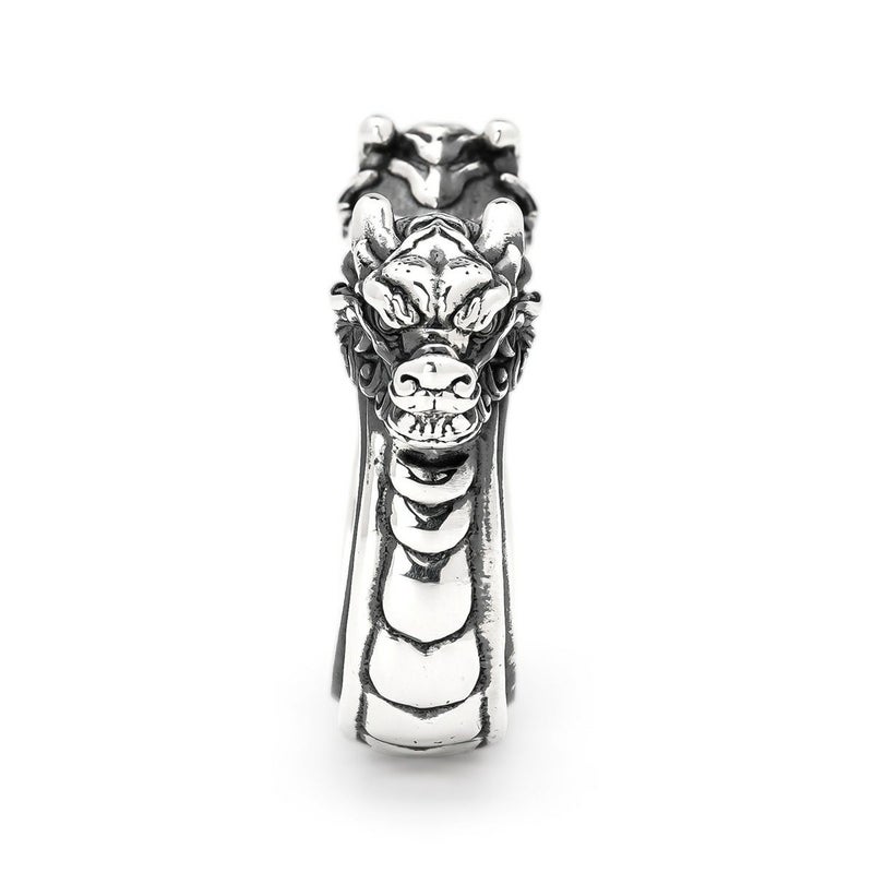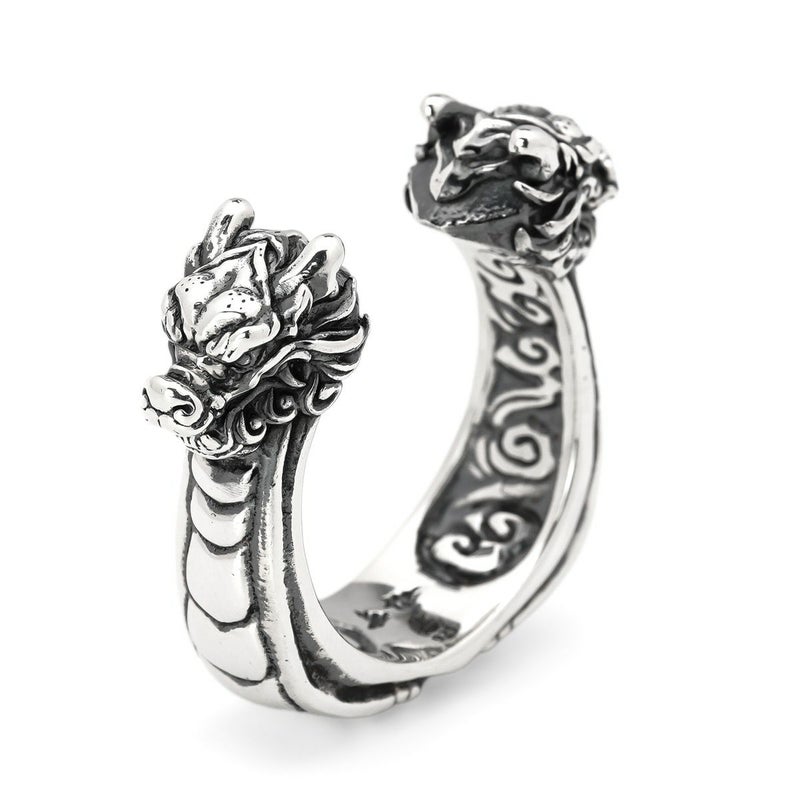2つの龍の頭を付け、まるで船のようなデザインを見せたドラゴンリング。