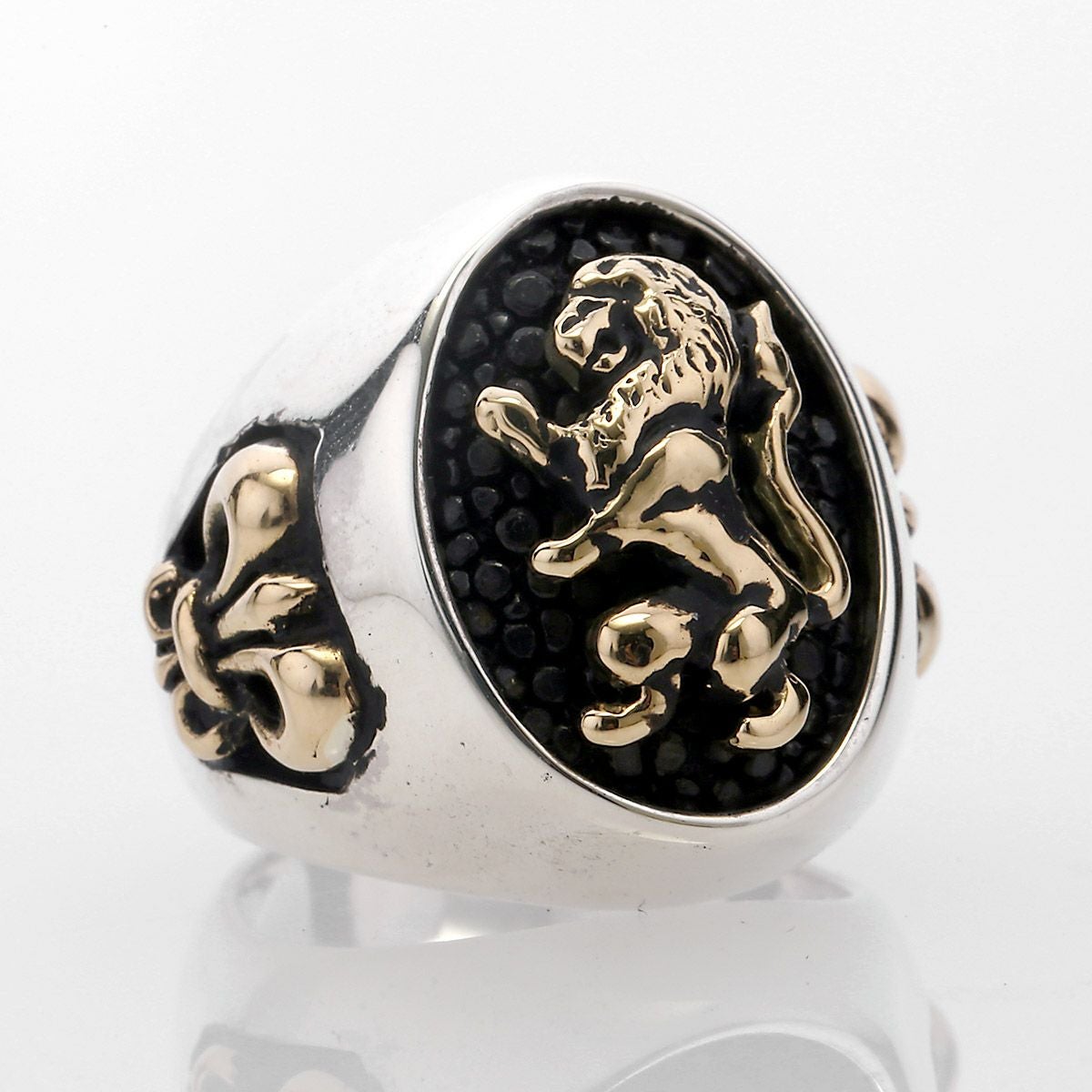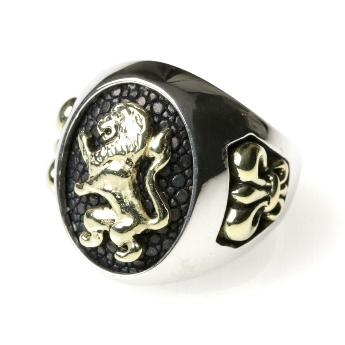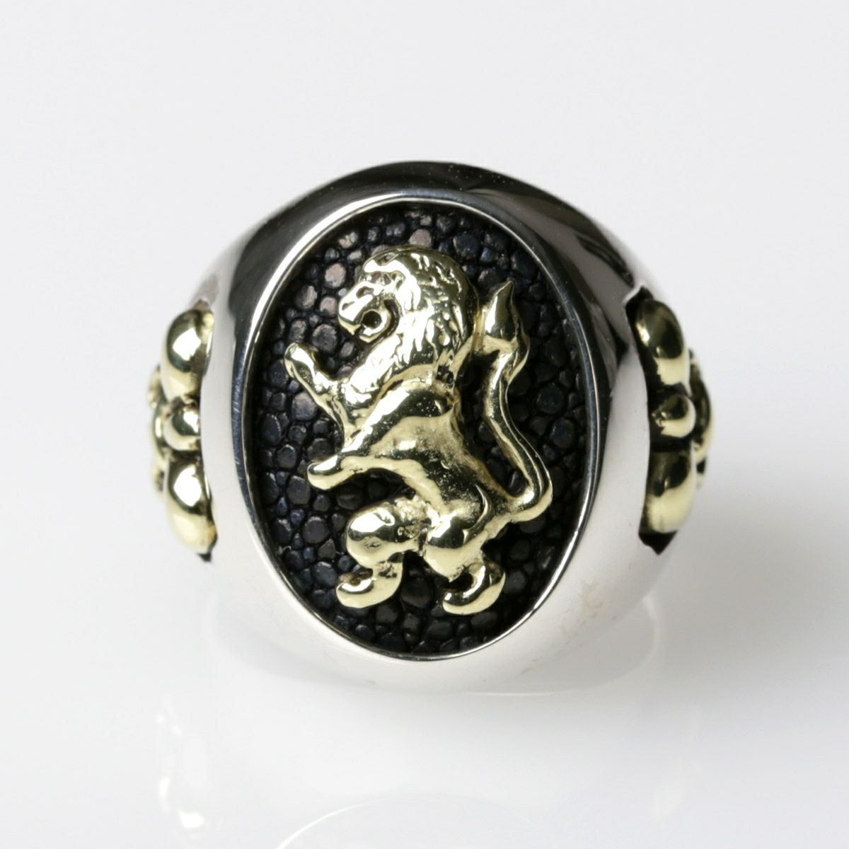 レザーズアンドトレジャーズ スモールスペシャルエディションリング w/K18ライオン/サイドフレアデリー w/サンディッドスティングレイ