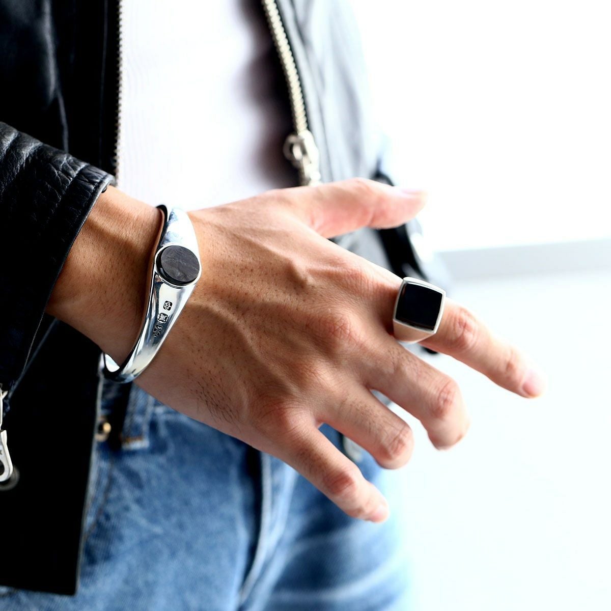 レザーズアンドトレジャーズ オーバルスクロールベゼルカレッジリング w/マリア w/スティングレイ