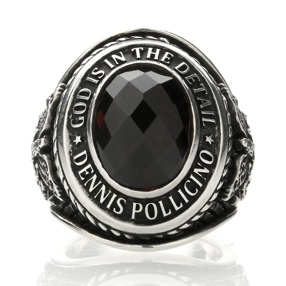 レザーズアンドトレジャーズ オーバルスクロールベゼルカレッジリング w/ブルーストーン(Cz)