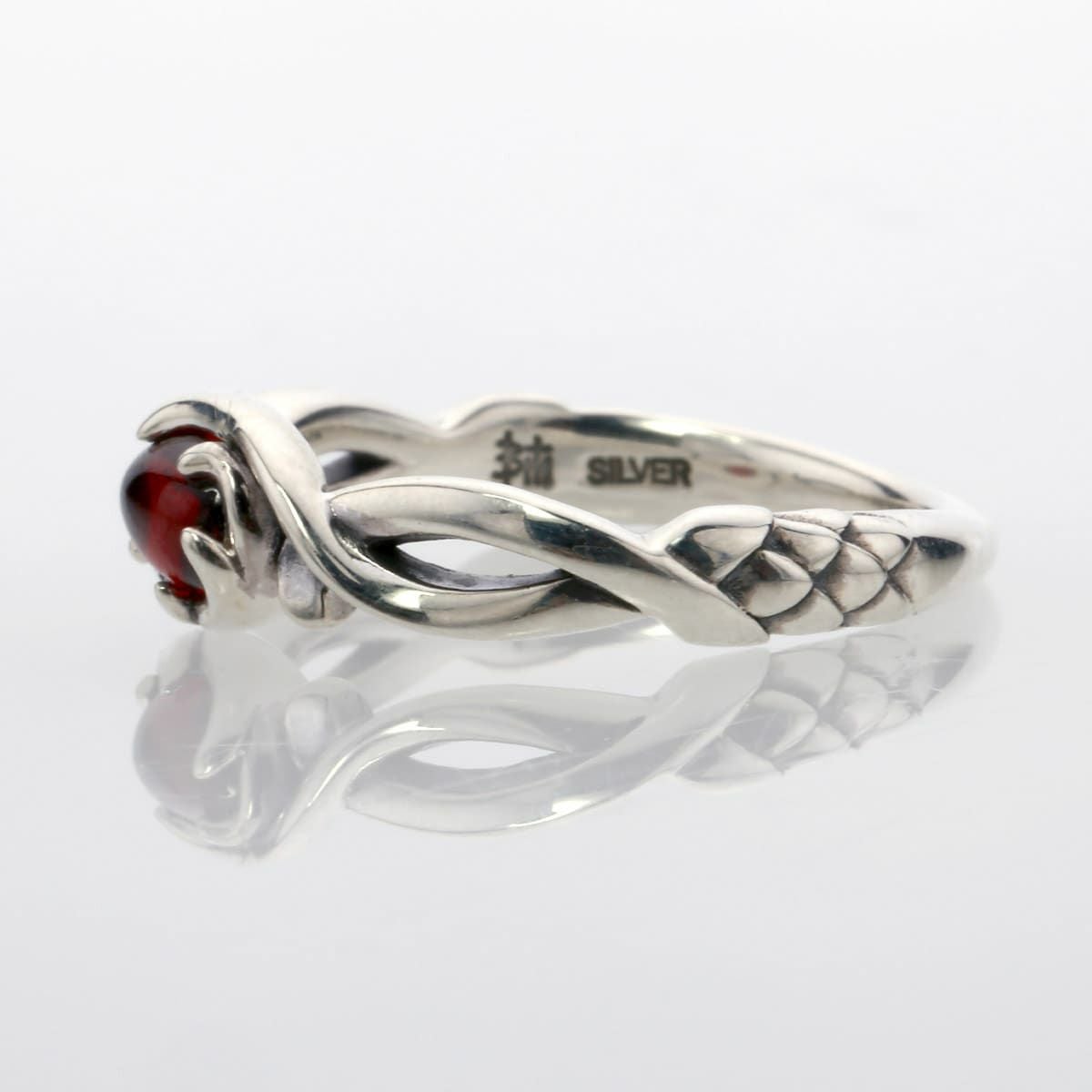 レザーズアンドトレジャーズ ナロースクロールハートリング ガーネット