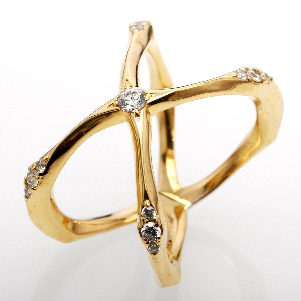 ヴェルヴェットラウンジ Intersect インターセクトリング/ホワイト×ゴールド/ホワイトキュービックジルコニア