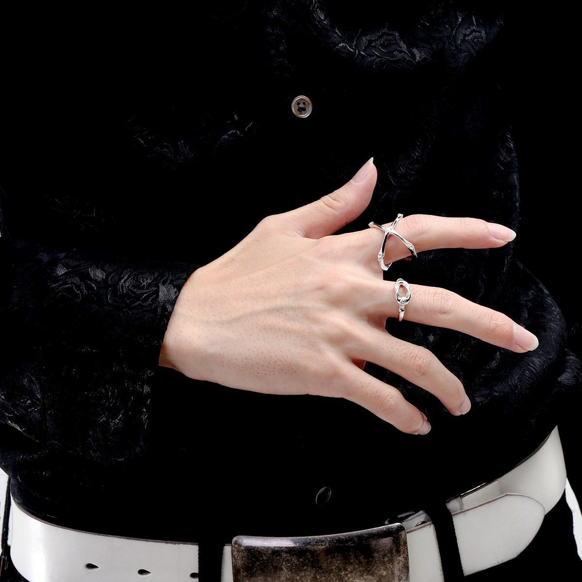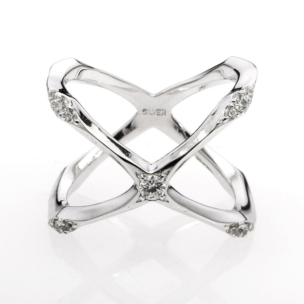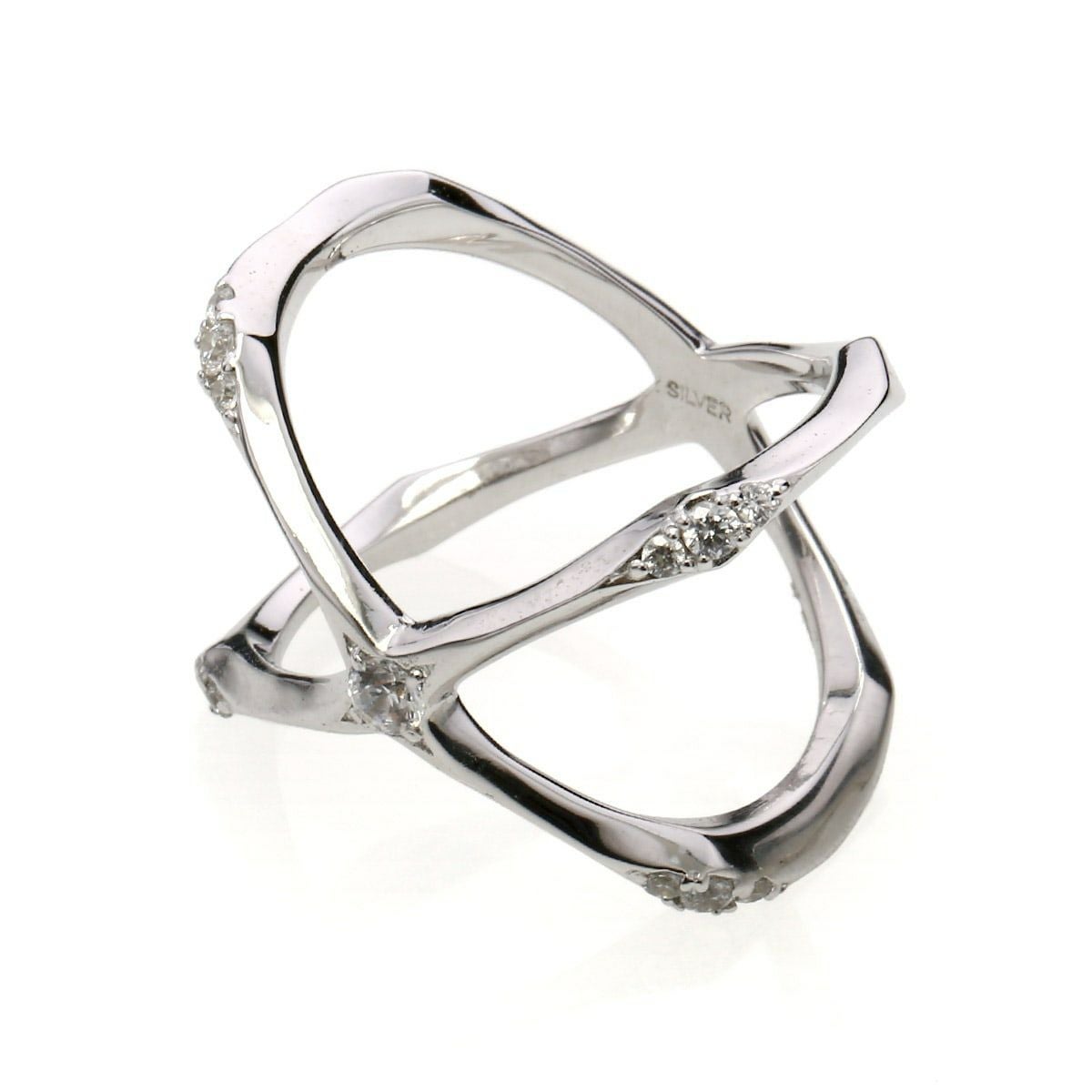 【SE7EN】チェ・ドンウクさん 着用 ヴェルヴェットラウンジ エッジングクロスリング/ホワイト/ホワイトキュービックジルコニア