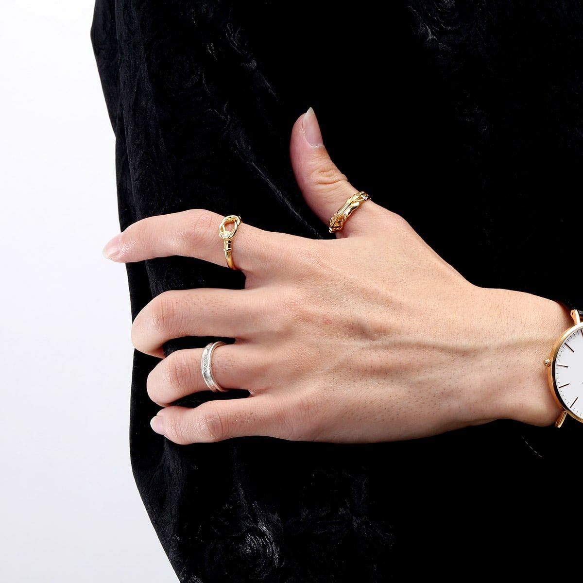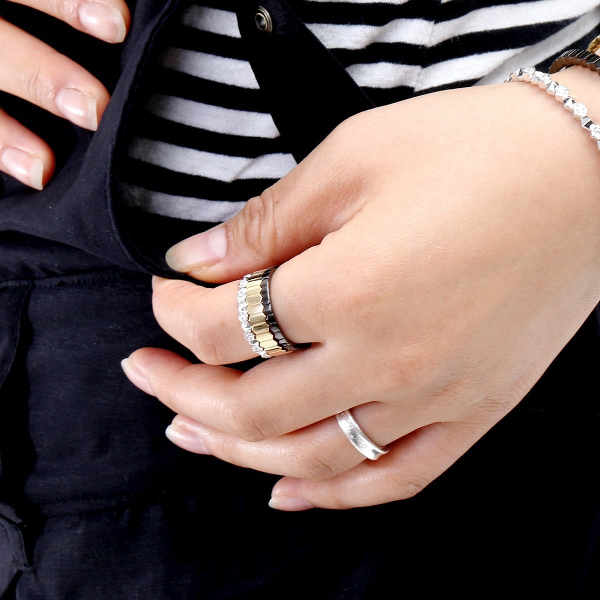 ヴェルヴェットラウンジ Intersect インターセクトリング/ゴールド×ブラック/ブラックキュービックジルコニア