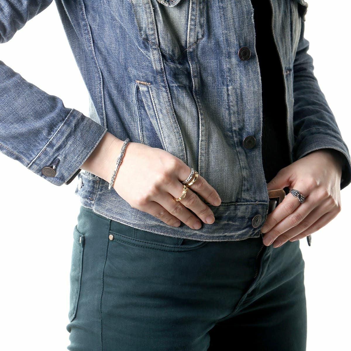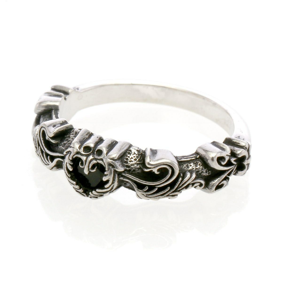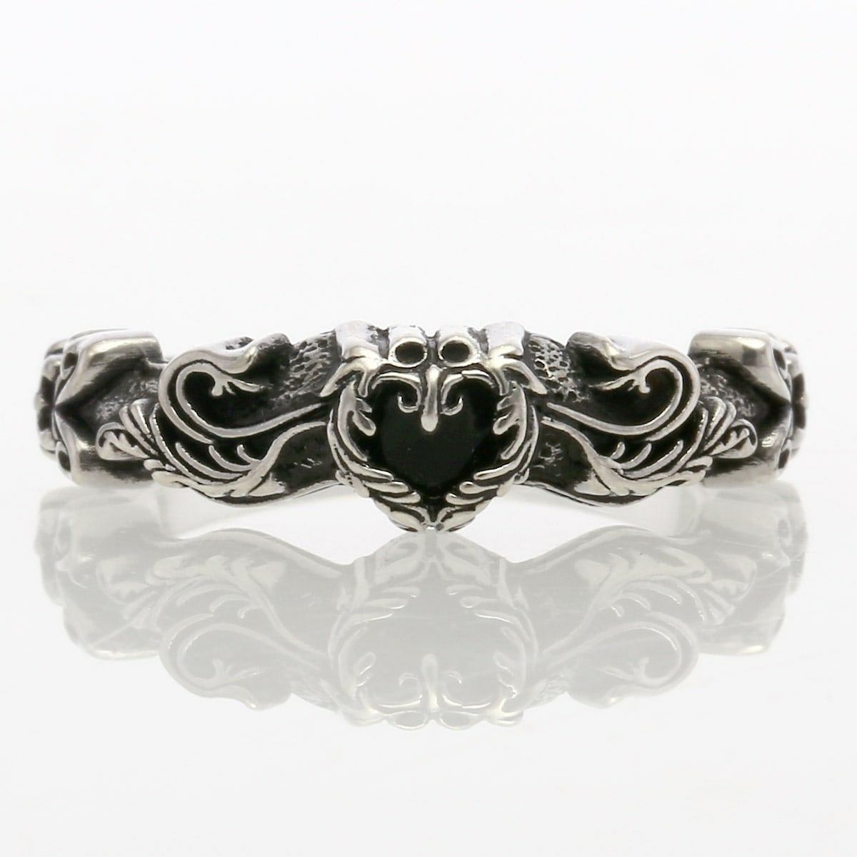 レザーズアンドトレジャーズ ナロースクロールハートリング オニキス
