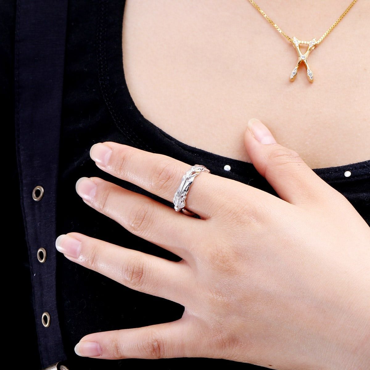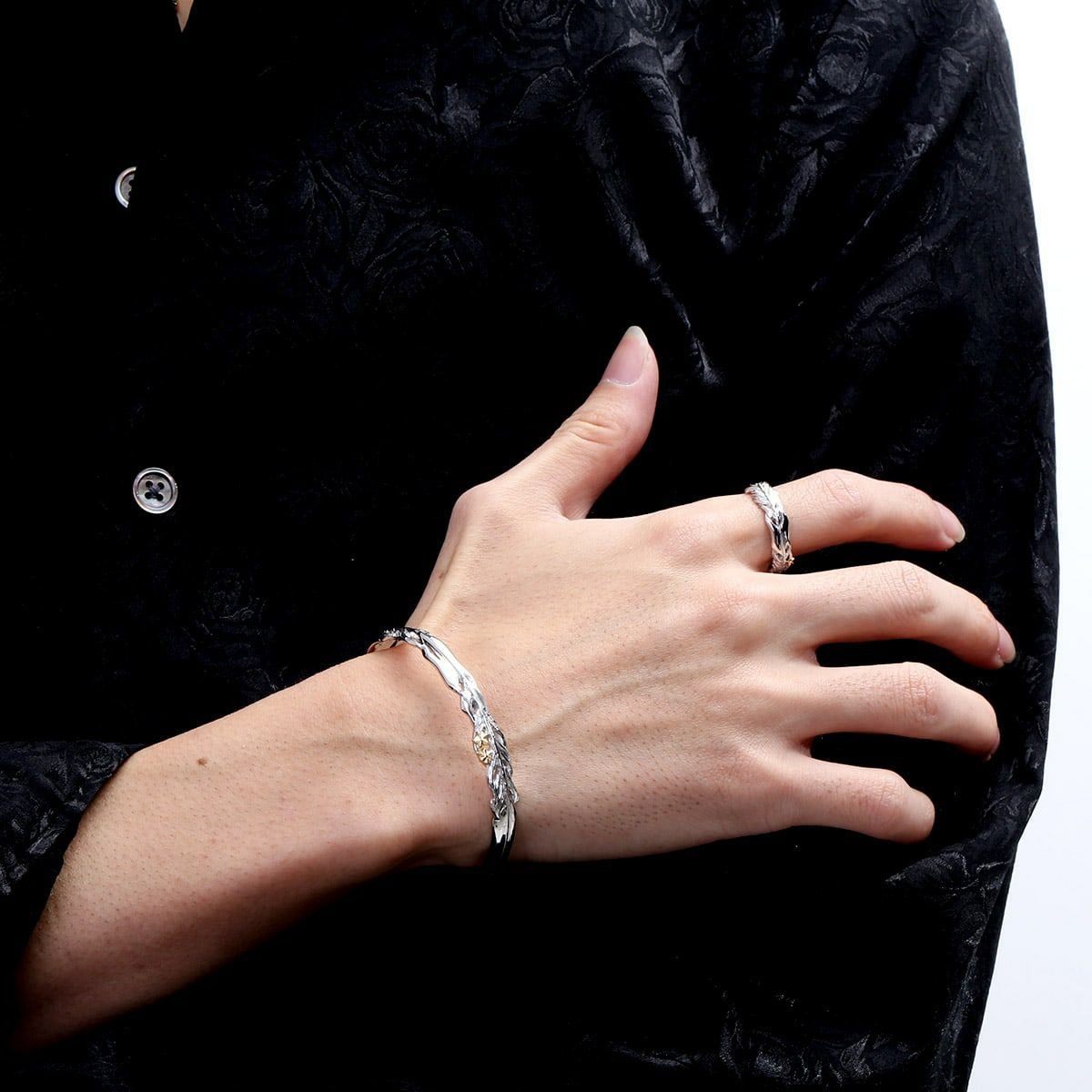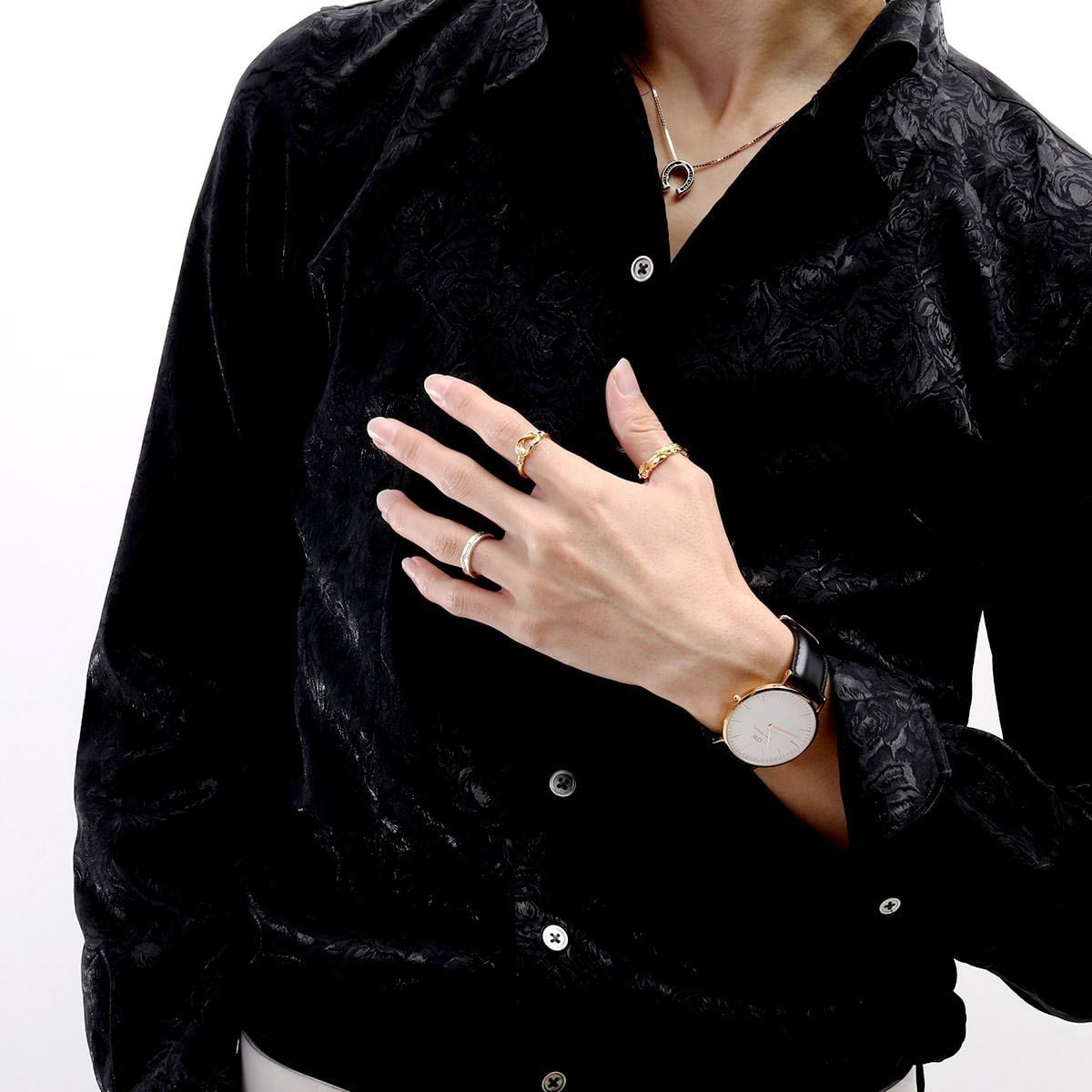 レザーズアンドトレジャーズ ナロースクロールハートリング オニキス