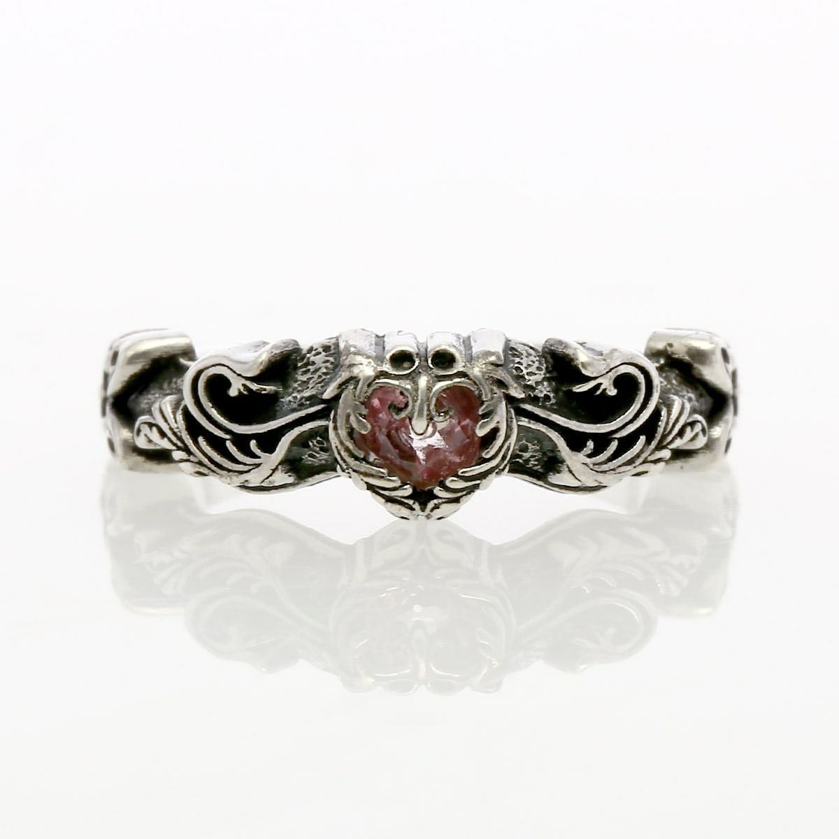 レザーズアンドトレジャーズ ナロースクロールハートリング ピンクトパーズ