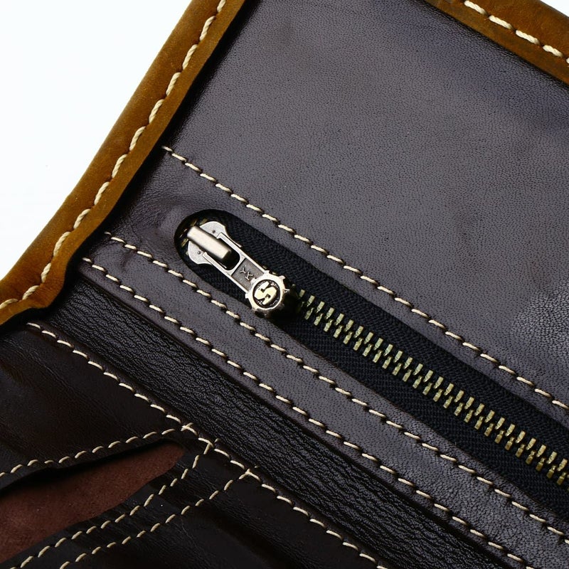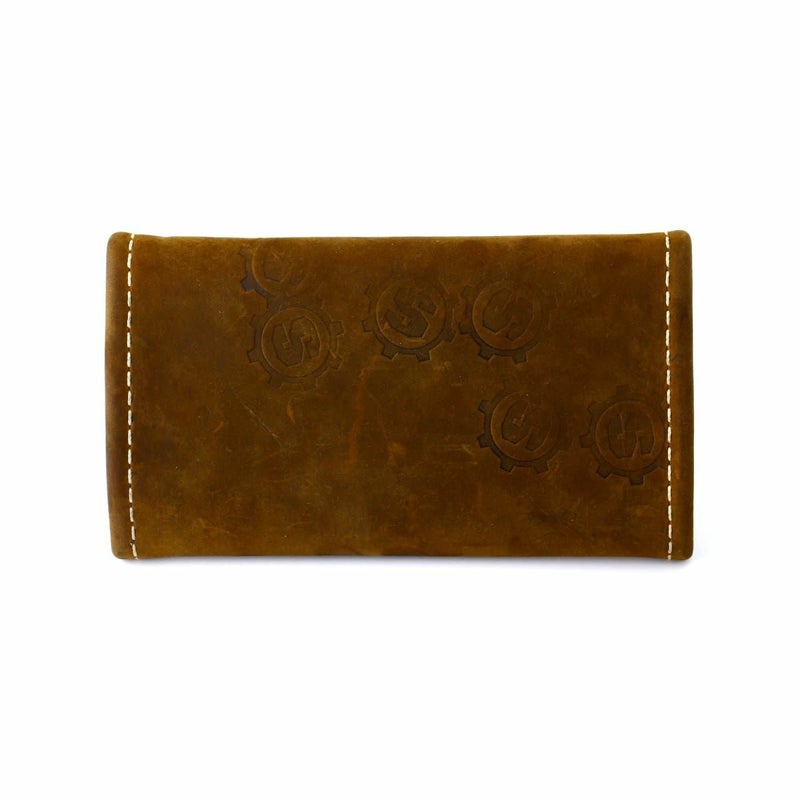 長年の使用にも耐えうる上質で厚みのあるカウレザーを使用したトラッカーウォレット。ランダムにSギアスタンプが押されている。