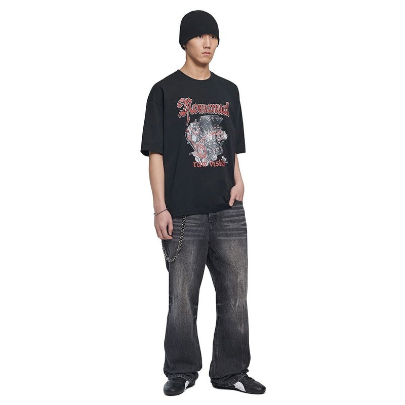 ノーマニュアル エヌエム エンジン Tシャツ - ブラック