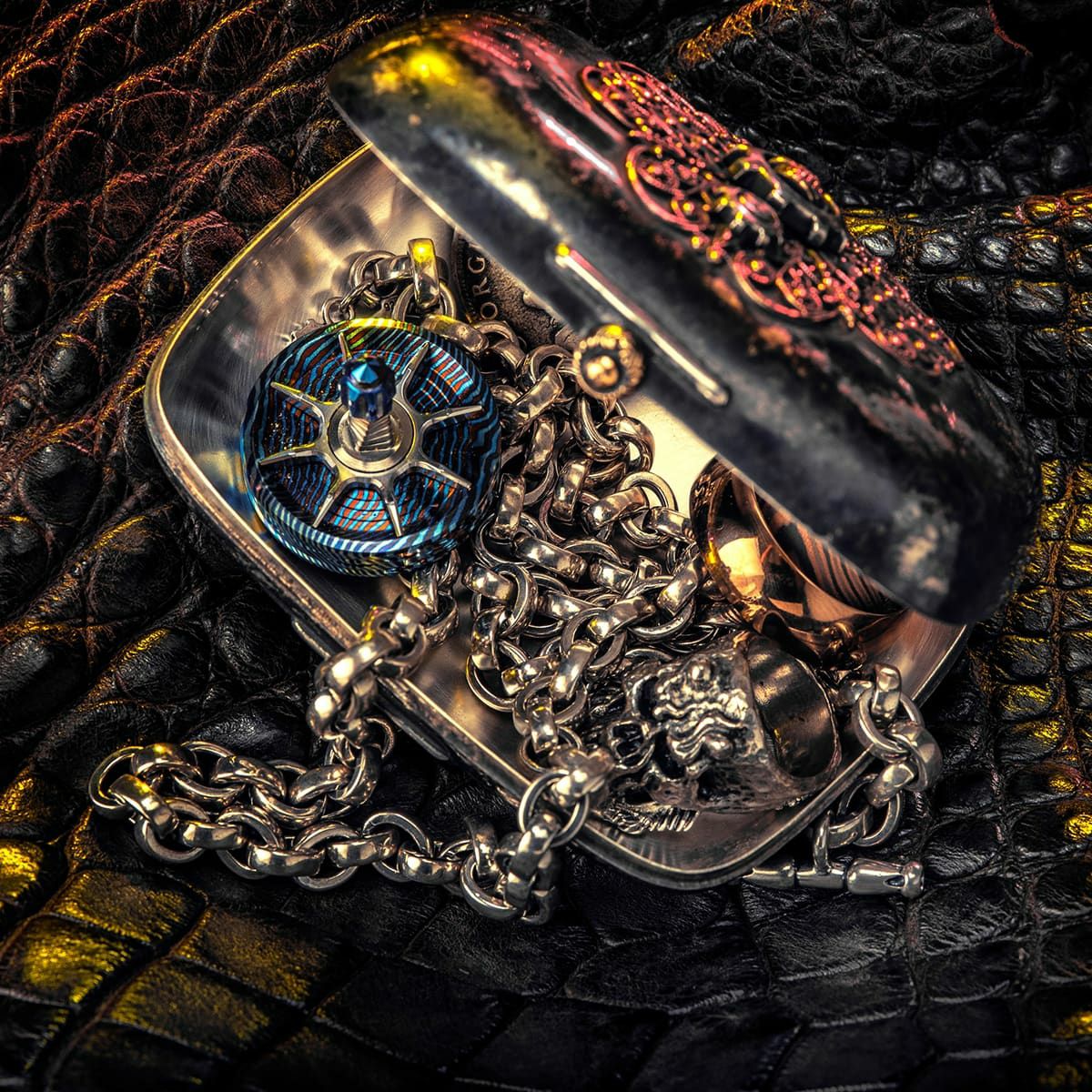 他の画像を見る カートに入れる スターリンギア パンチャーSOBリング w/コバルト / フレイムス / Sギアロゴ / ハンドテクスチャー / コバルトブルー&ゴールド ¥ 165,000 税込 在庫切れ