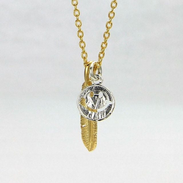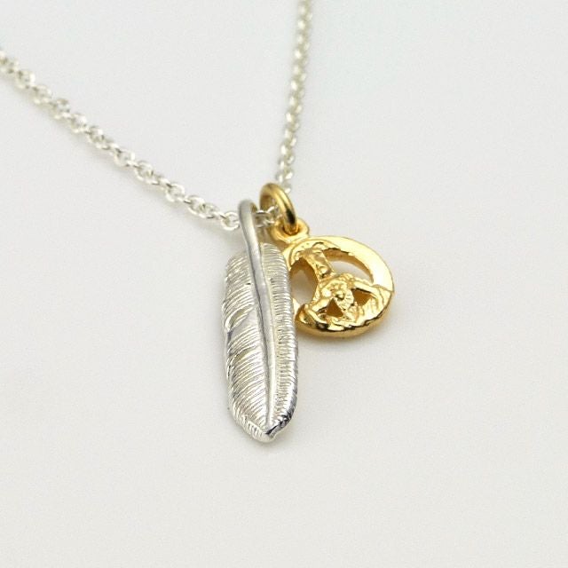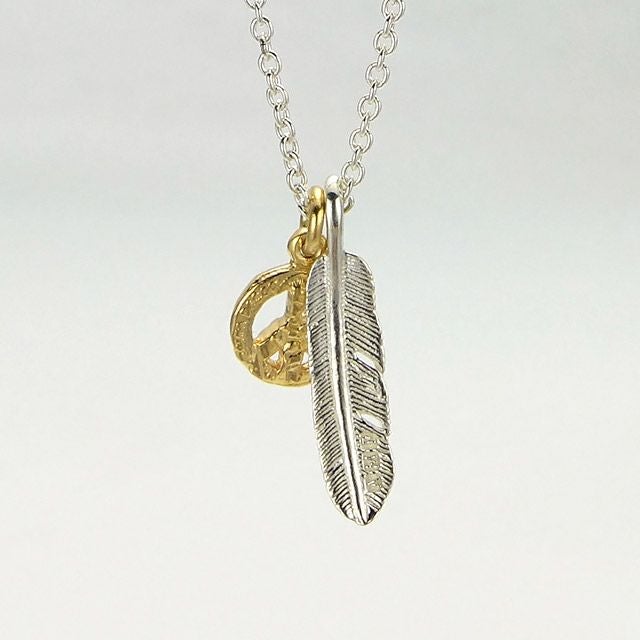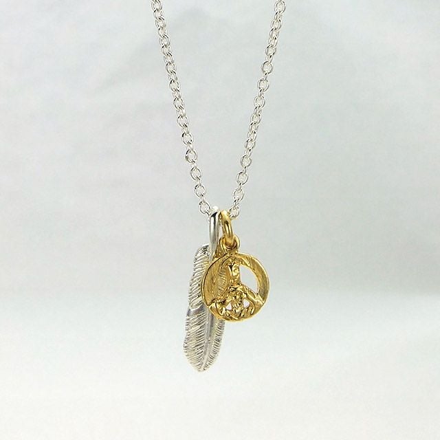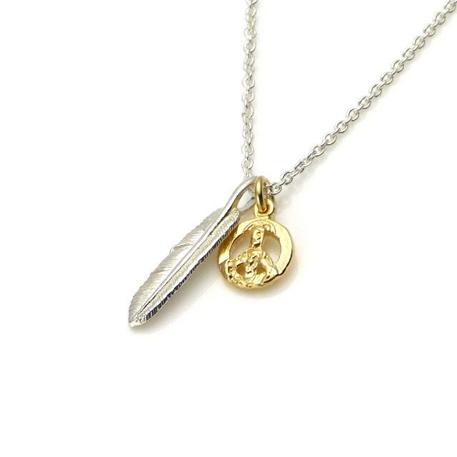 他の画像を見る カートに入れる アンプジャパン amp japan Small Feather & Peace Sign Necklace スモールフェザー&ピースサイン ネックレス ¥ 14,300 税込