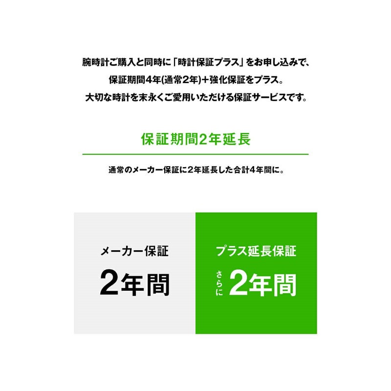 対象の腕時計をお買い上げの際、時計保証プラスを加入いただくと、メーカー保証期間をさらに【2年延長】