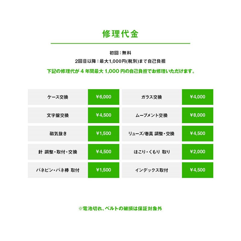 ・電池切れ・ベルト交換は保証対象外
