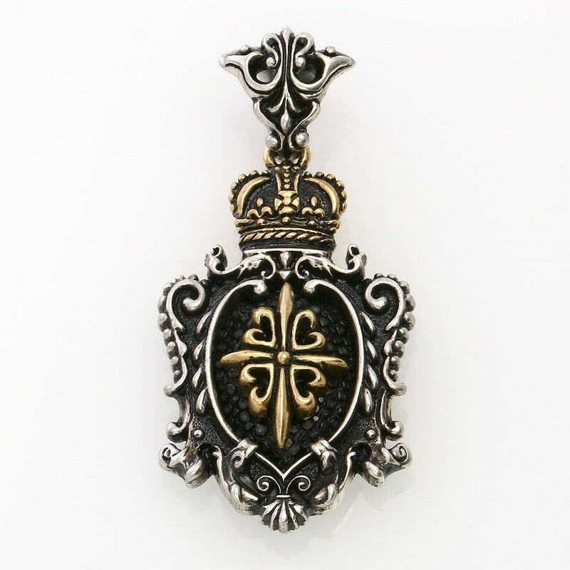 レザーズアンドトレジャーズ キングクラウンクレストインレイペンダント K18フローレンティンクロス&クラウン(トップのみ)