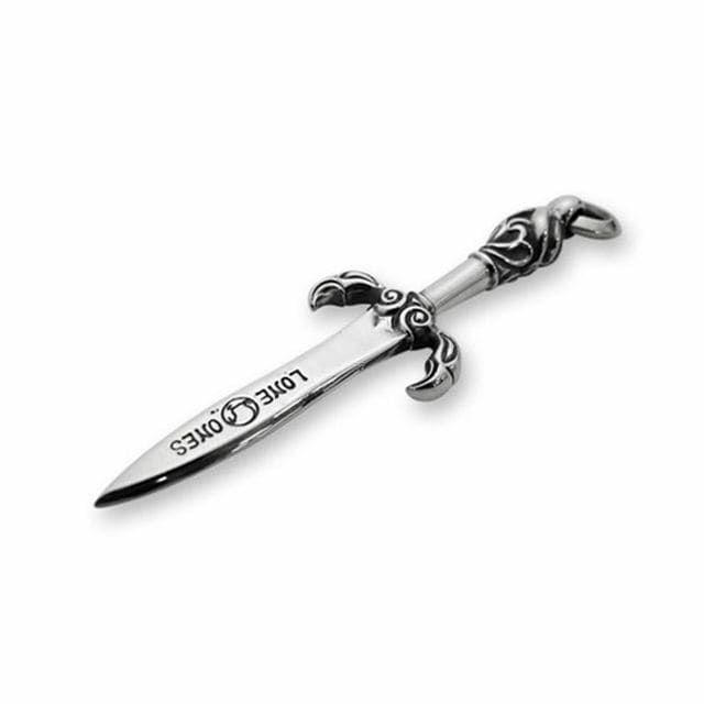 ロンワンズ初のダガーモチーフのペンダントです。ロンワンズらしい細めの美しいラインのデザインは女性でも着けられるほどなめらかに仕上げられています。縦ラインのデザインは顔から胸までをすっきりと見せる効果があり、女性におすすめのアイテム。