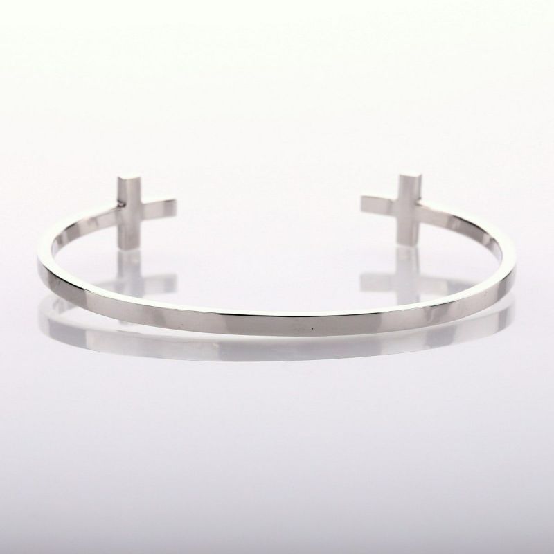 スタッズクロスとストーンクロスをサイドにデザインされたバングルになります。裏側はプレーンなので、着ける向きでかなり違った印象になるのが特徴。
