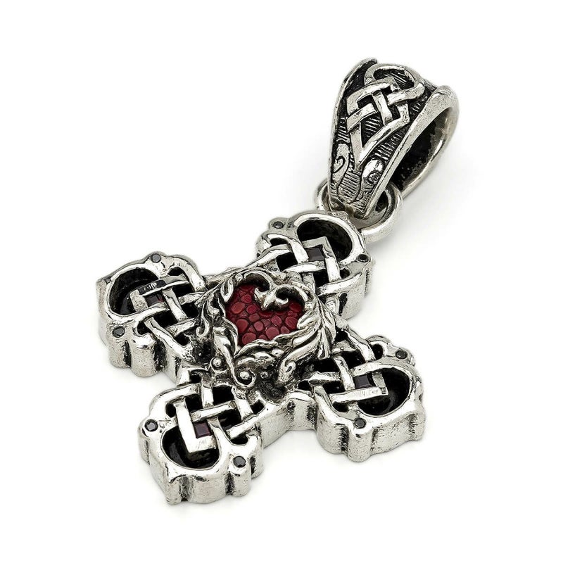 【現品のみ】レザーズアンドトレジャーズ スモールケルティックノットクロスペンダント w/サンディッドスティングレイ w/ルビー&オニキス