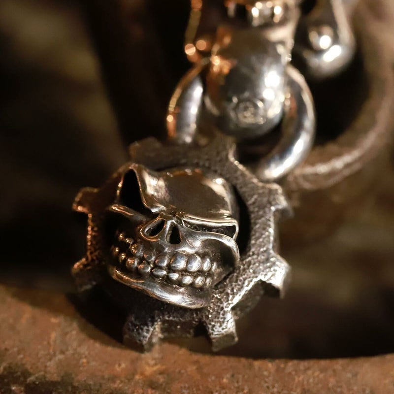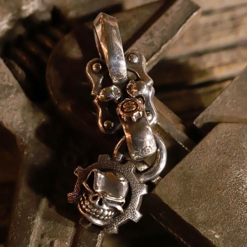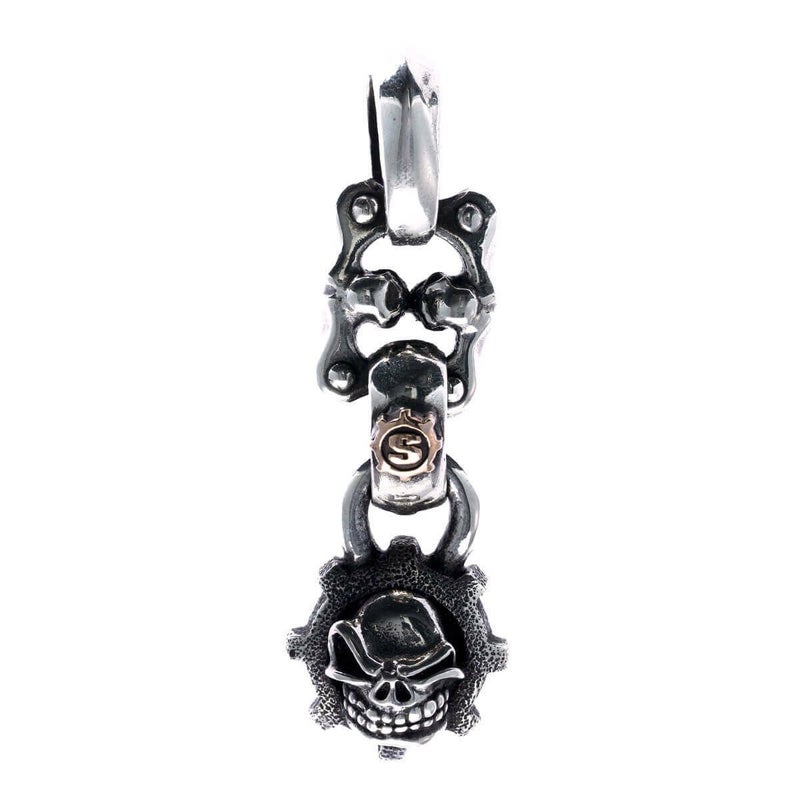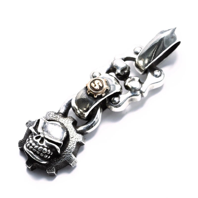 【カスタム】 スターリンギア マイクロスカルギアフェイスペンダントw/フェイシングスカルリンク/ブラスSギアロゴ
