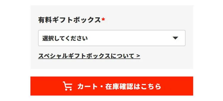 ご注文時、カートボタン上の「有料ギフトボックス」にて「スペシャルギフトボックス(+1,650円 税込)」選択ください。 ※対象商品のみお選びいただけます。対象外商品には表示されません。
