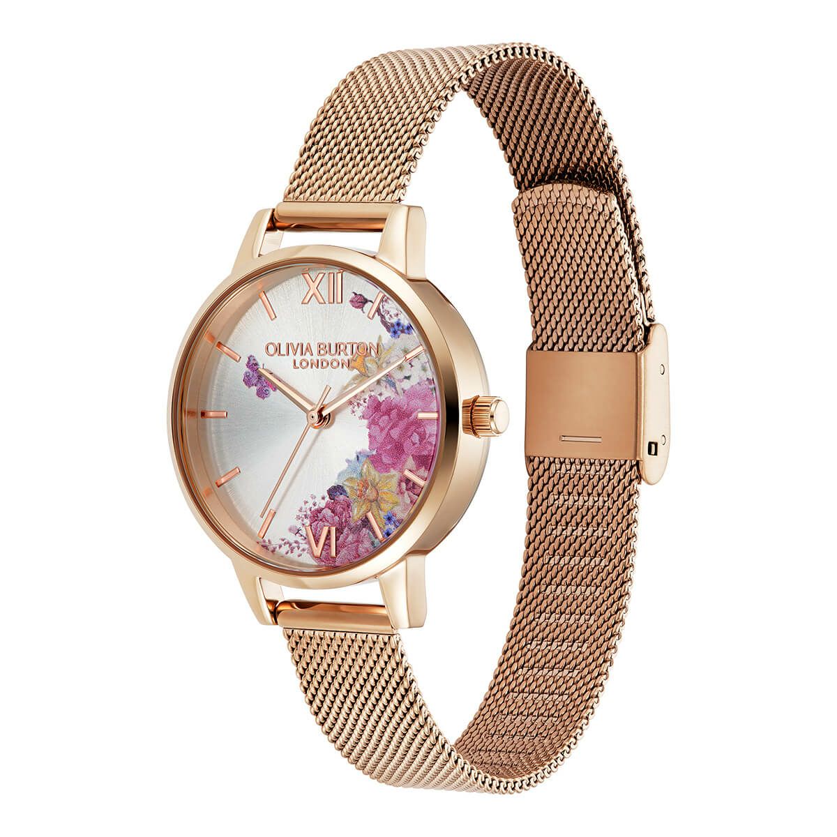 オリビア・バートン シグネチャー - 30mm イラストレイテッド フローラル ローズゴールド メッシュ