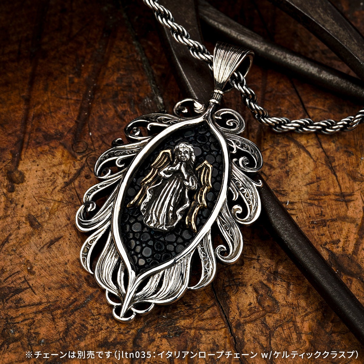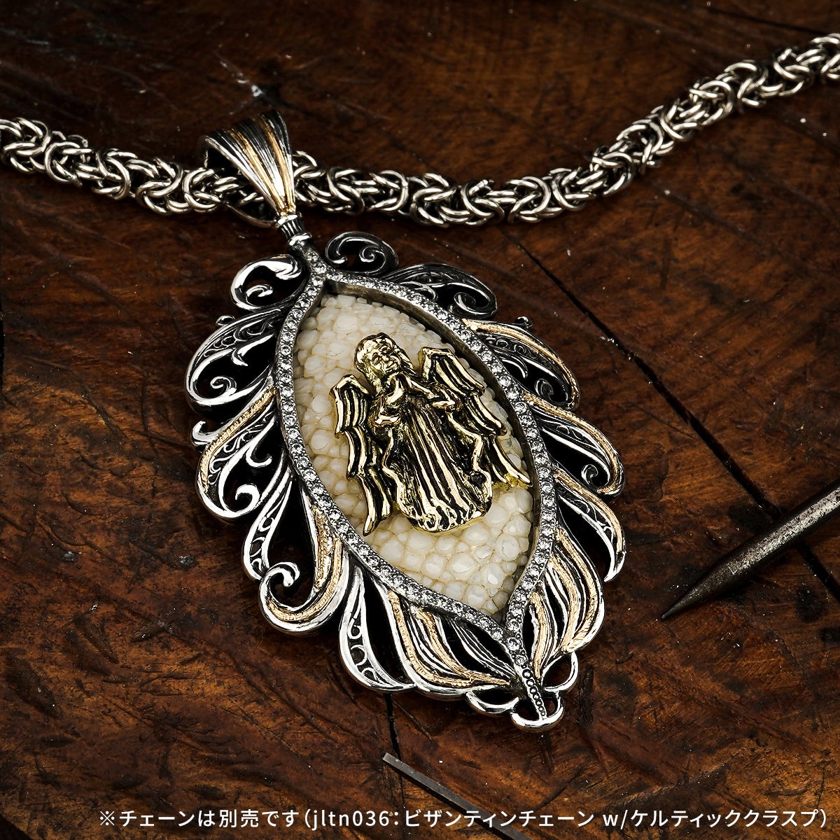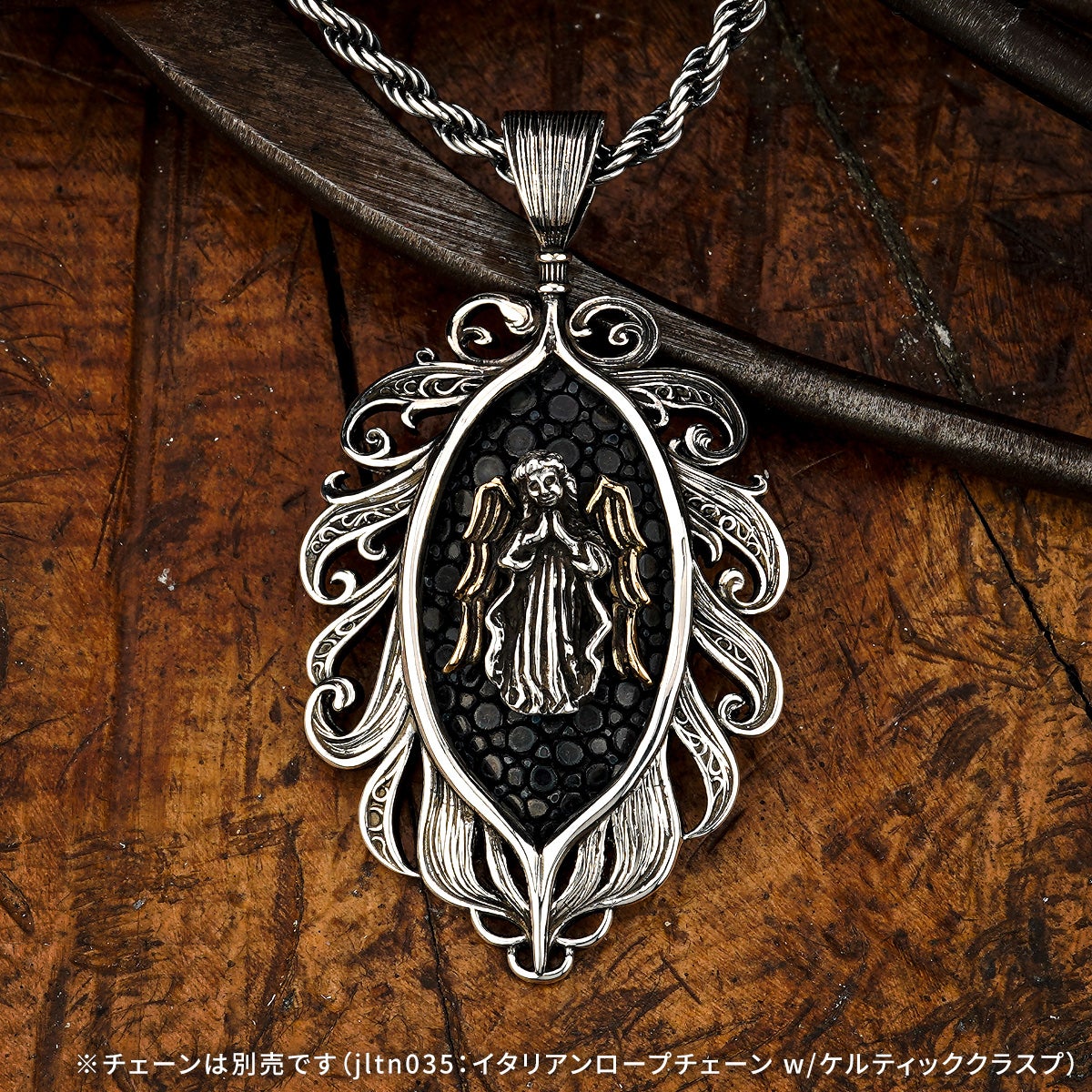 他の画像を見る カートに入れる レザーズアンドトレジャーズ エンブレイスフェザーインレイペンダント w/ガーディアンエンジェル w/サンディッドスティングレイ(レザーカラー選択可能) ¥ 154,000 税込 販売開始前です。 販売期間 2026/04/25 12:00 〜