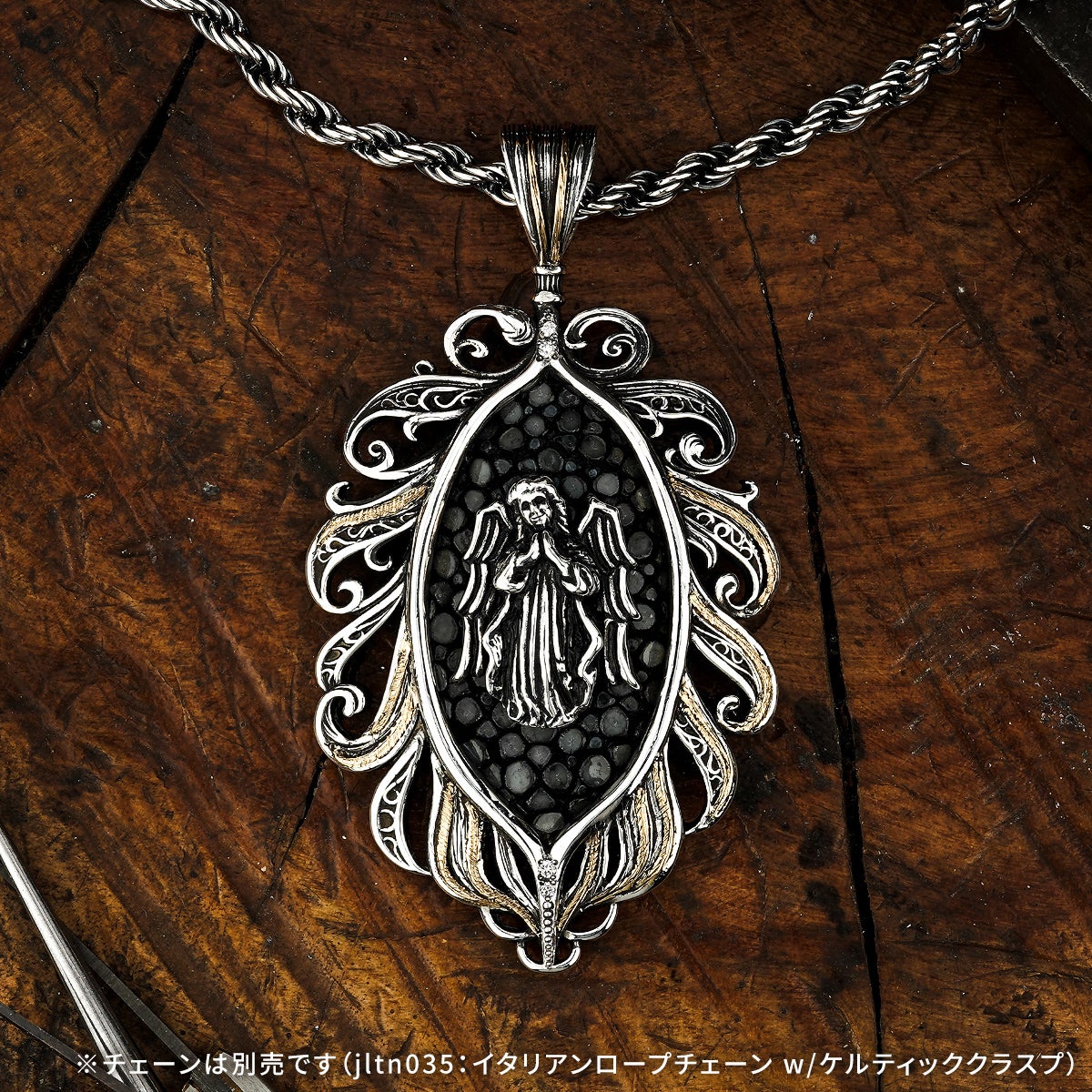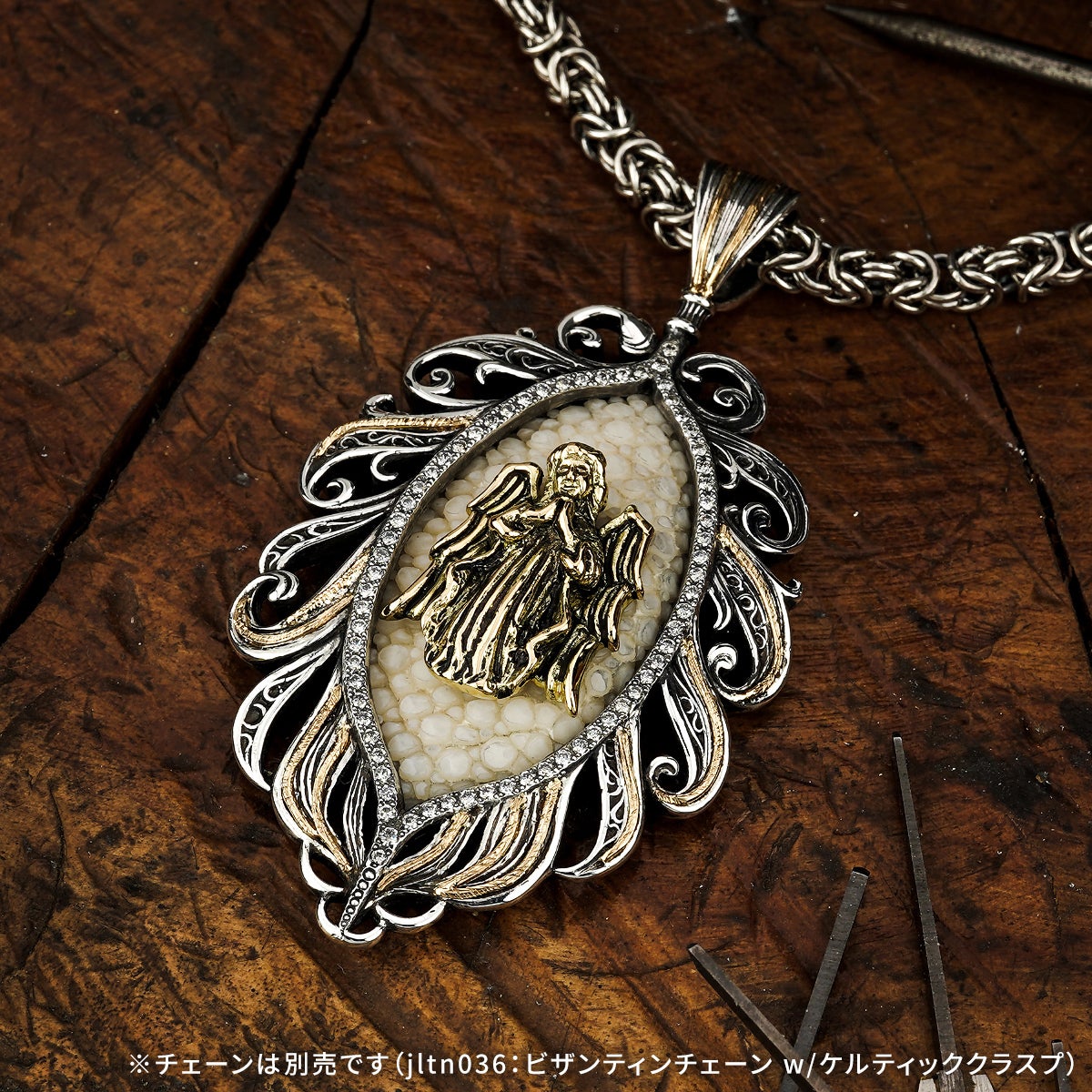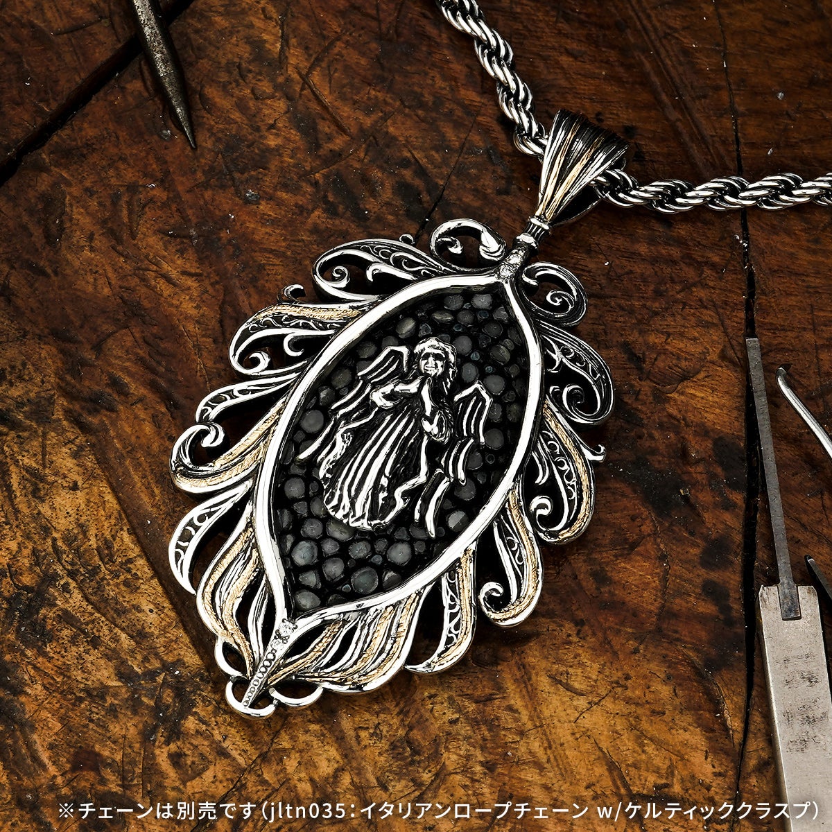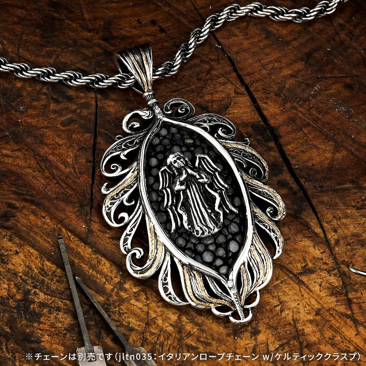 他の画像を見る カートに入れる レザーズアンドトレジャーズ エンブレイスフェザーインレイペンダント w/ガーディアンエンジェル w/サンディッドスティングレイ(レザーカラー選択可能) ¥ 154,000 税込 販売開始前です。 販売期間 2026/04/25 12:00 〜